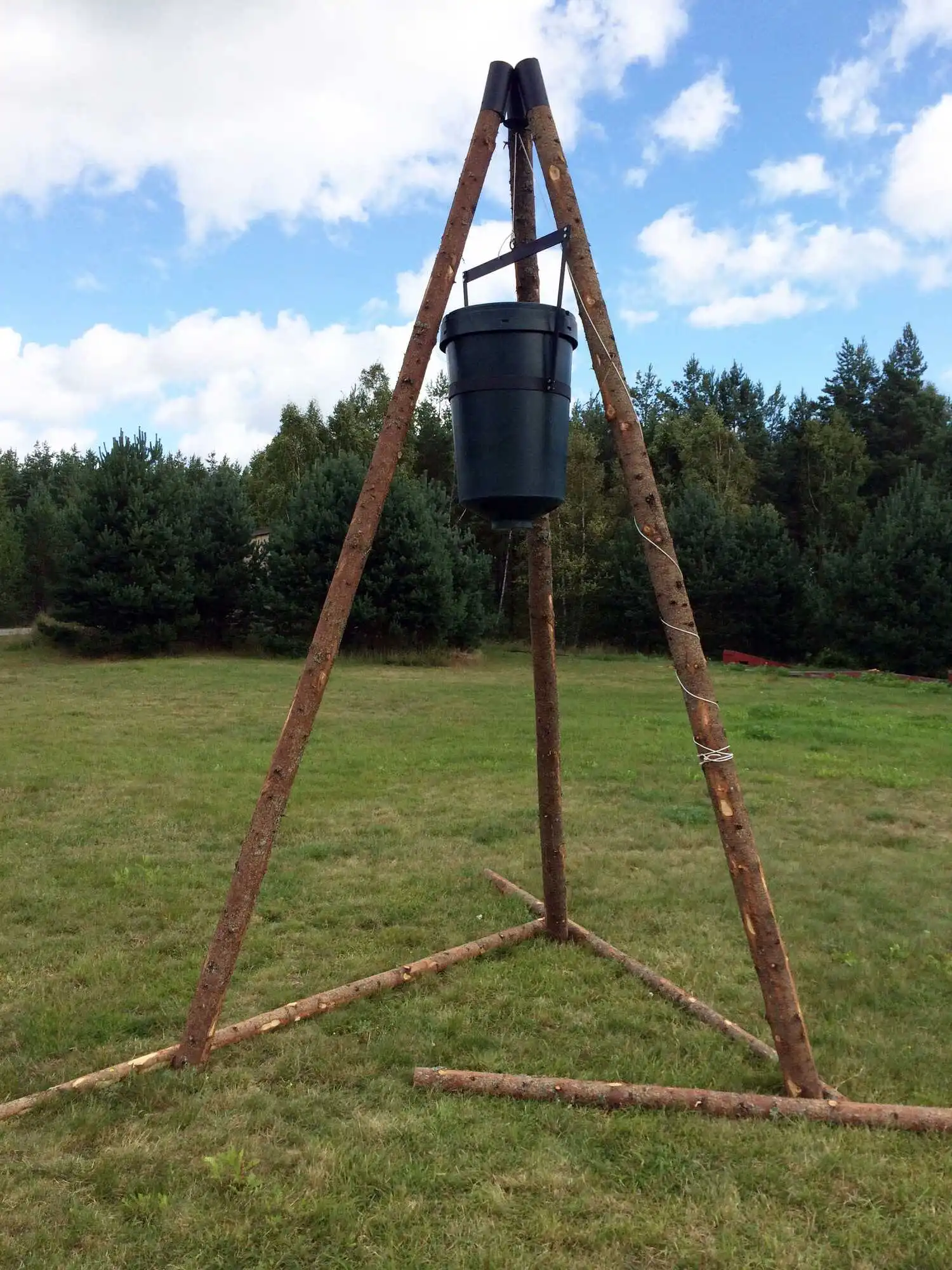 - Fäll tre unga träd (Ø100 mm), såga dem till önskad längd.