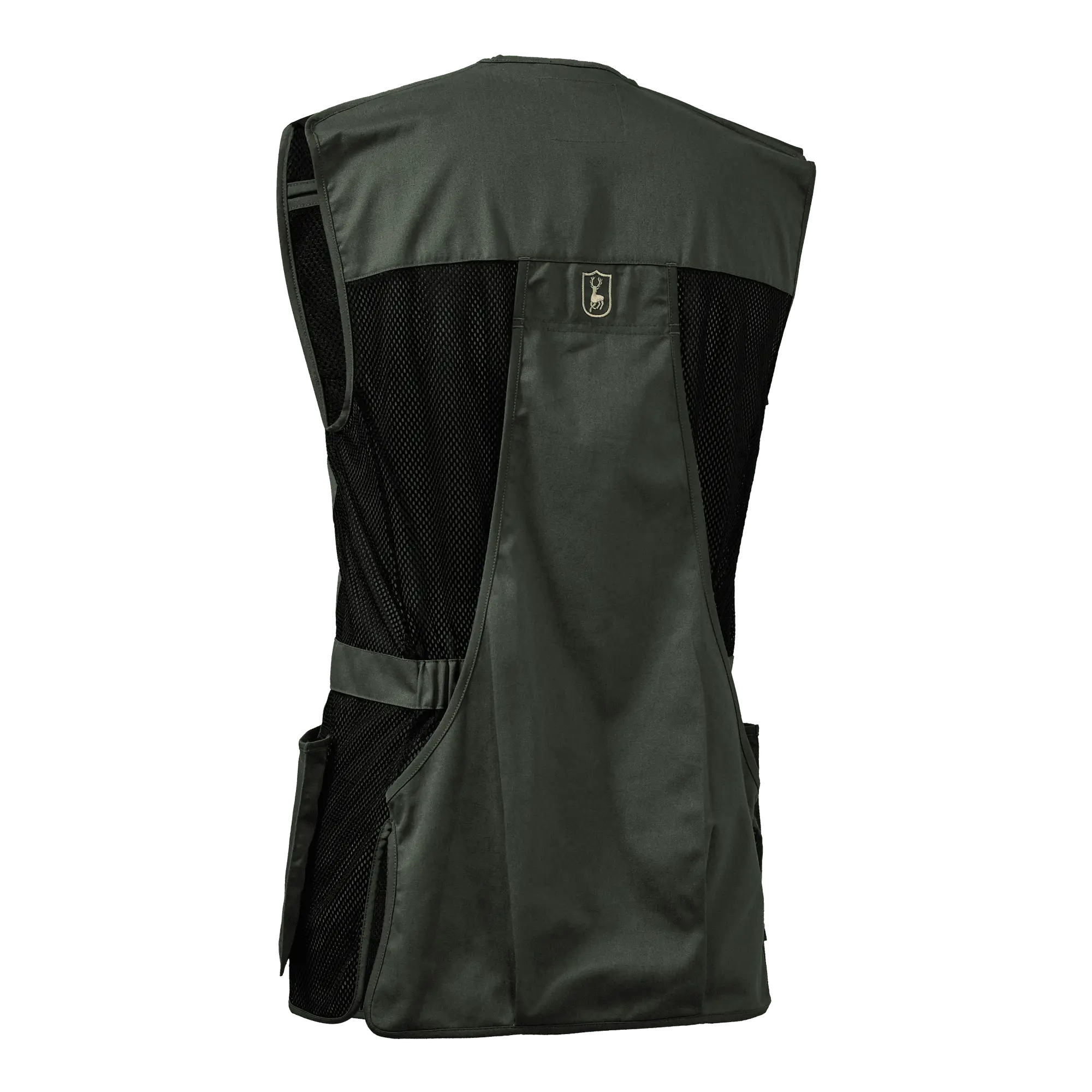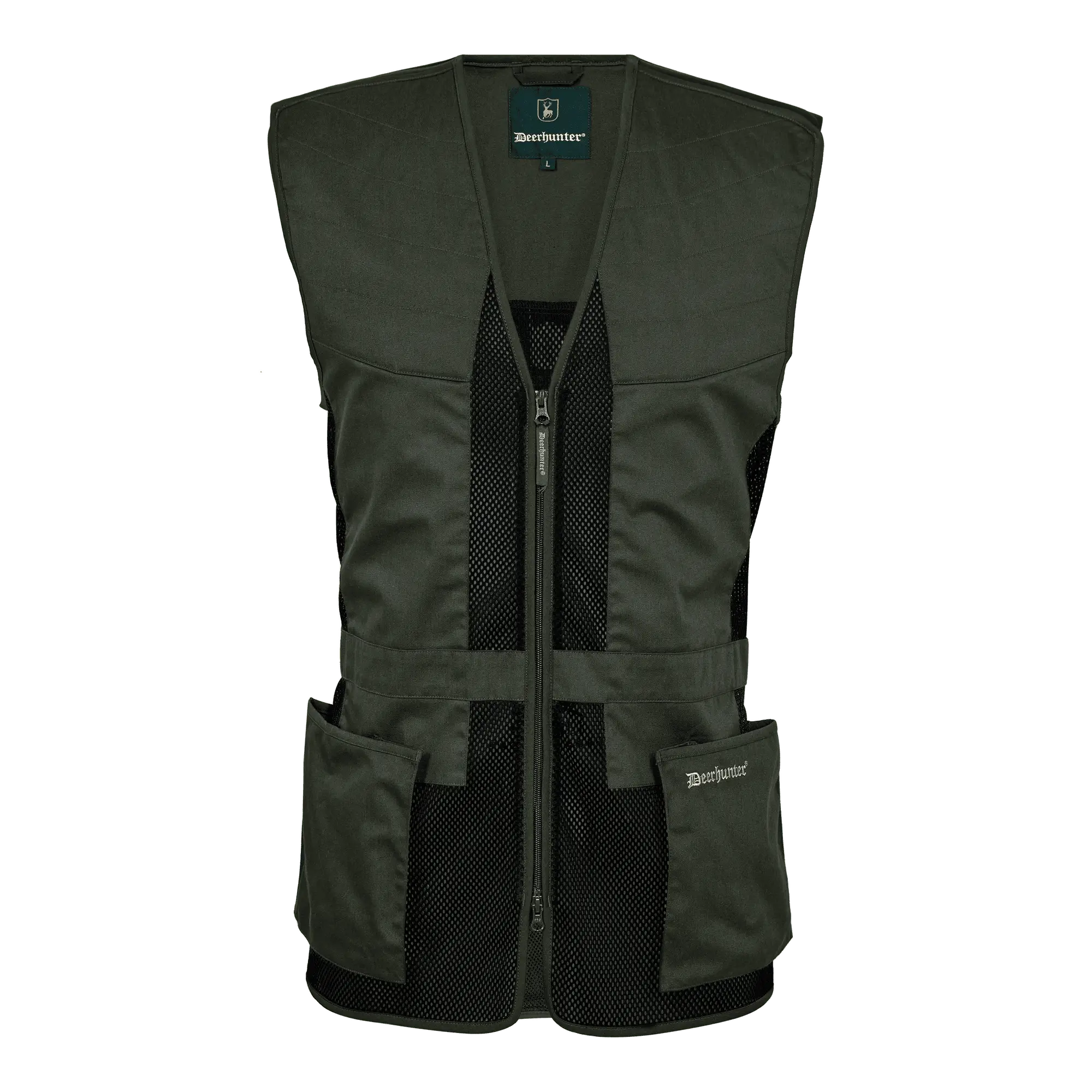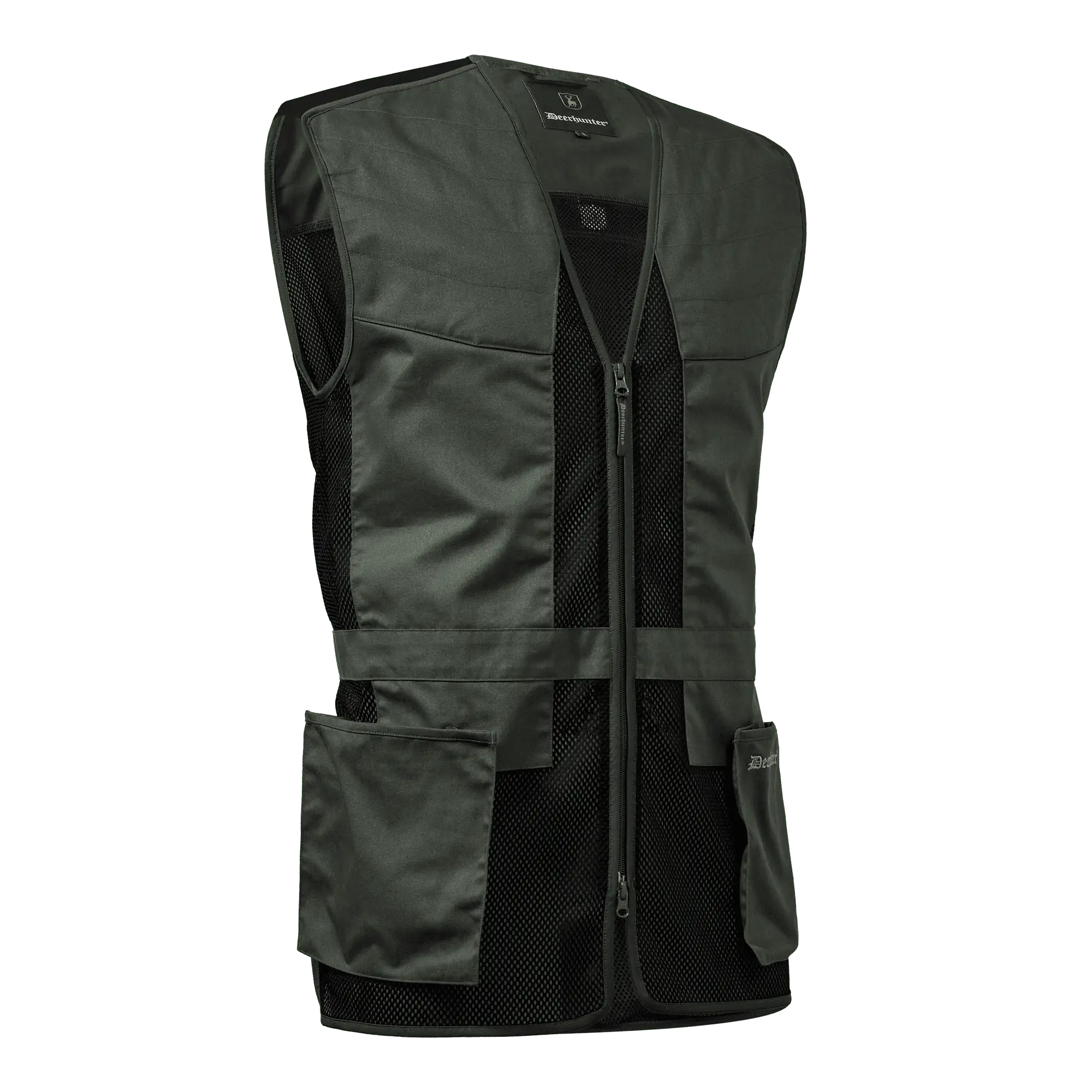 Andningsbar nätväst med rekylskydd, elastiska detaljer och rymliga fickor.