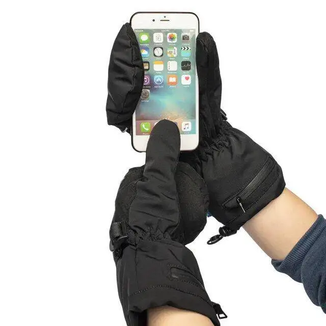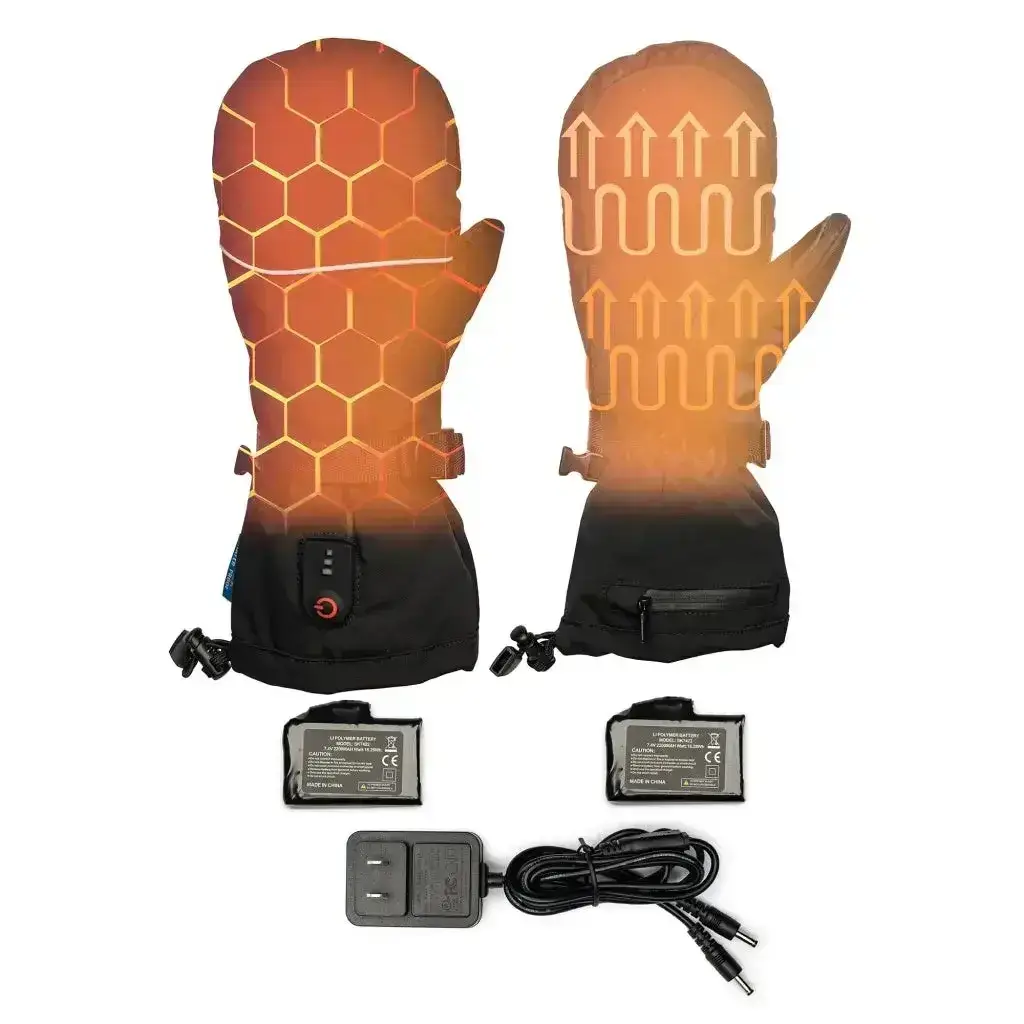 Svarta uppladdningsbara värmevantar med 2 batterier & laddare - Håll dina händer varma hela vintern