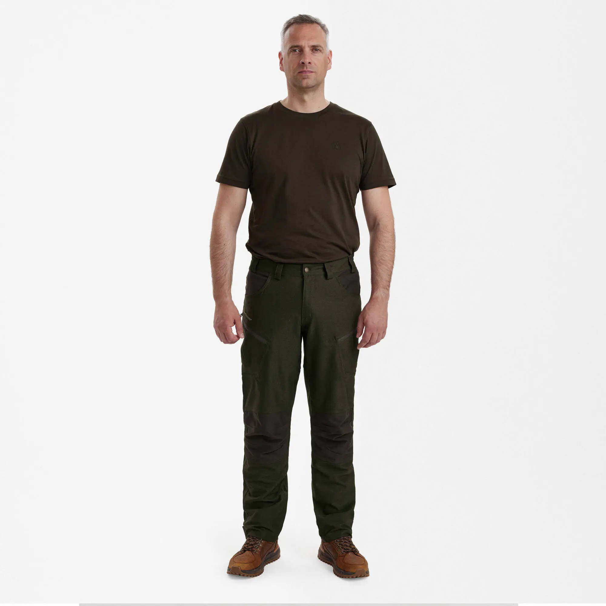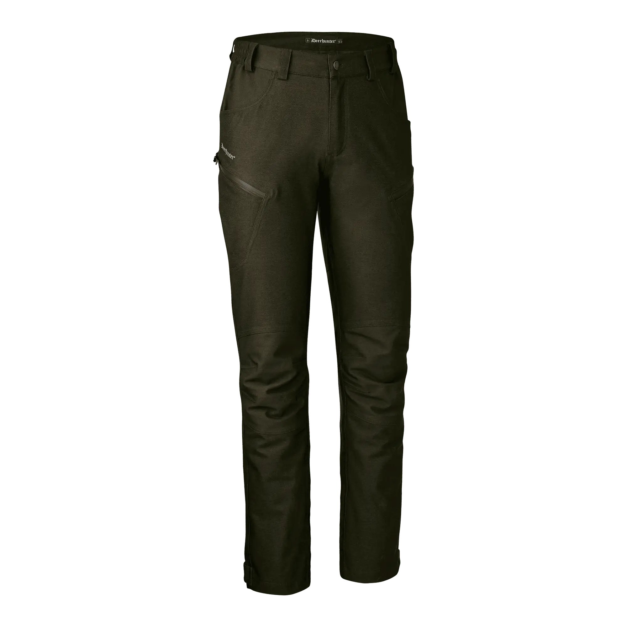 Dessa byxor är ett utmärkt val för dig som vill ha komfort och funktion utan att kompromissa med stil eller hållbarhet. Med fokus både på prestanda och design är byxorna utrustade med en elastisk midja som ger en optimal passform och anpassar sig efter din kropp. Det gör dem perfekta för långa dagar, oavsett om du är ute på jakt i skogen eller rör dig i stadslivet. Med en välavvägd blandning av polyester i både foder och yttertyg får du god andningsförmåga och skydd mot vind och väder. Vattentätheten och fuktregleringen är optimerade till 5000 mm WP och 5000 g MVP, vilket ser till att du håller dig torr och bekväm under utomhusaktiviteter.