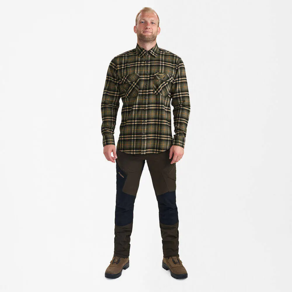 Andrew-skjortan är en mjuk och bekväm flanellskjorta, designad med ett stilfullt, rutig mönster som passar perfekt för den aktiva jägaren. Skjortan är försedd med veck i ryggen för maximal rörelsefrihet, så du kan röra dig fritt under jakten eller andra utomhusaktiviteter. Med sin klassiska design och varma jordfärger är Andrew-skjortan ett mångsidigt plagg som fungerar både i skogen och till avslappnade sammankomster.