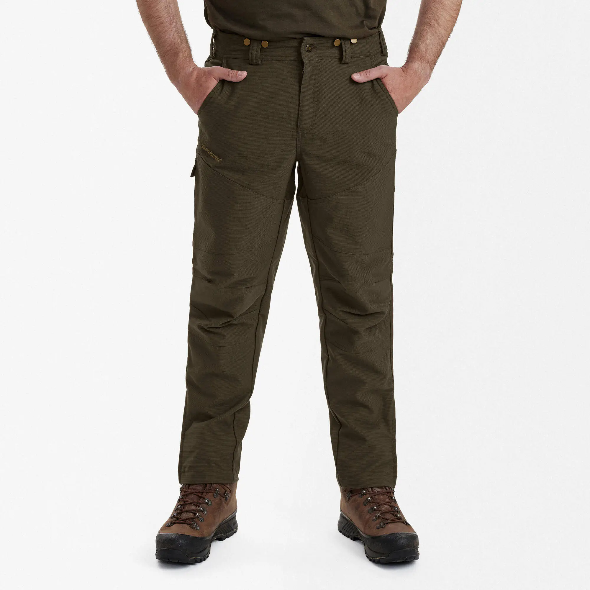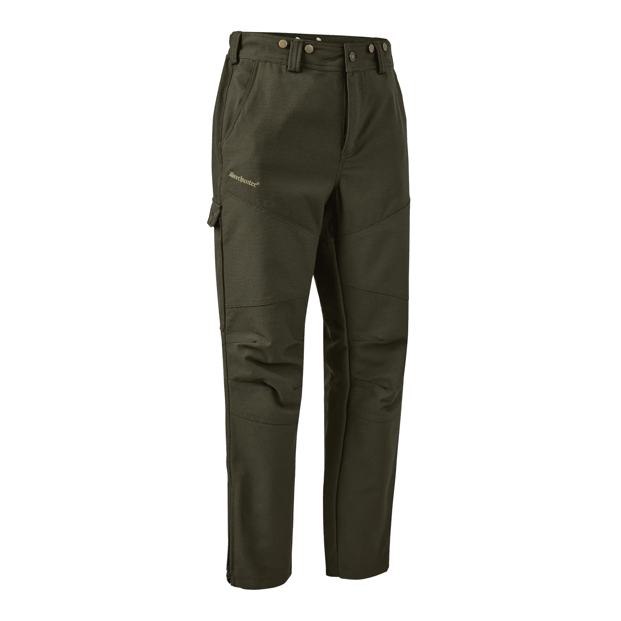 Med förstärkningar av Deerhunter Thornproof-stof i nyckelområden sätter dessa byxor en ny standard för slitstyrka i dina utomhusäventyr. Den taktiska fickkonfigurationen gör dem lika funktionella som de är hållbara. Flera fickor, inklusive en särskild knivficka med en extra stark fickklaff, ger dig möjlighet att bära din nödvändiga utrustning säkert och enkelt.
