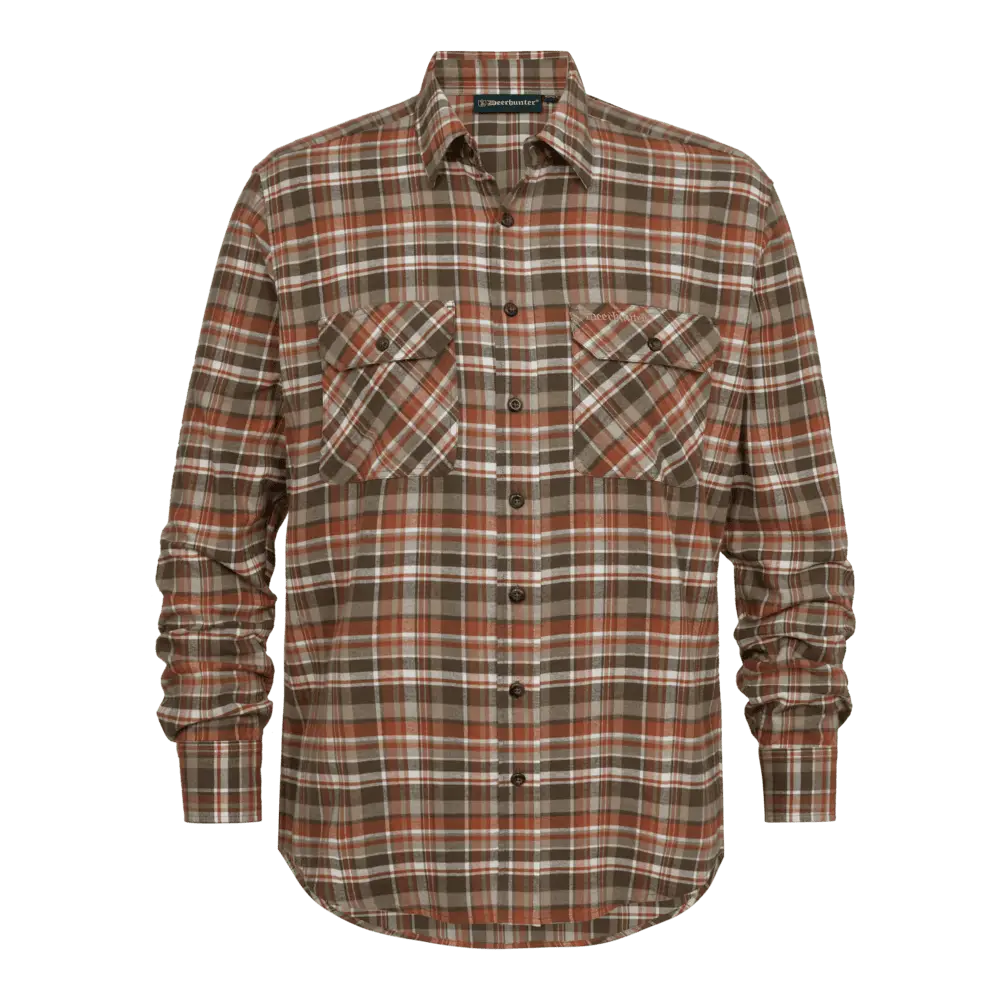 Andrew-skjortan är en mjuk och bekväm flanellskjorta, designad med ett stilfullt, rutigt mönster som passar perfekt för den aktiva jägaren. Skjortan är försedd med veck i ryggen för maximal rörelsefrihet, så att du kan röra dig fritt under jakten eller andra utomhusaktiviteter. Med sin klassiska design och varma jordtoner är Andrew-skjortan ett mångsidigt plagg som fungerar både i skogen och vid avslappnade träffar.