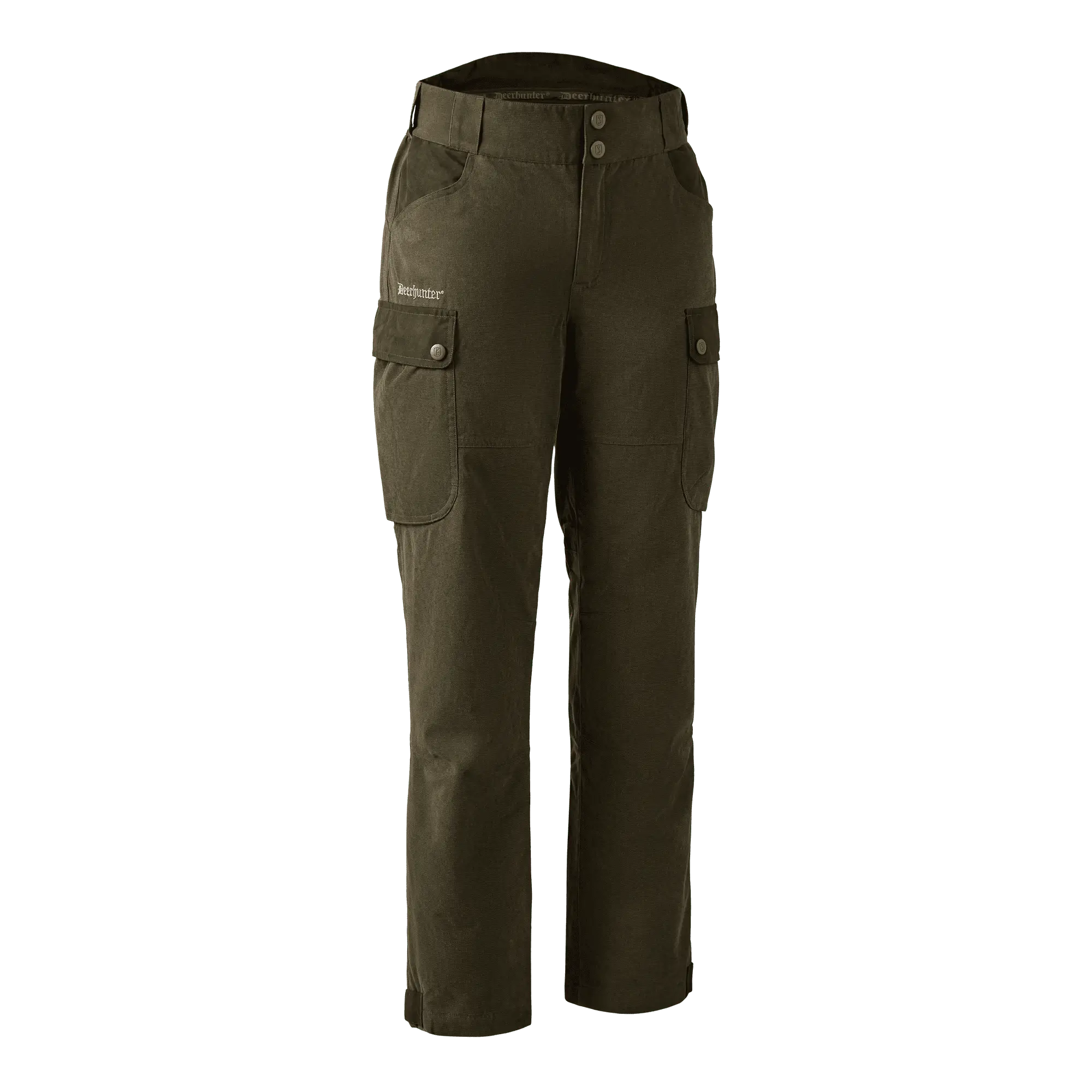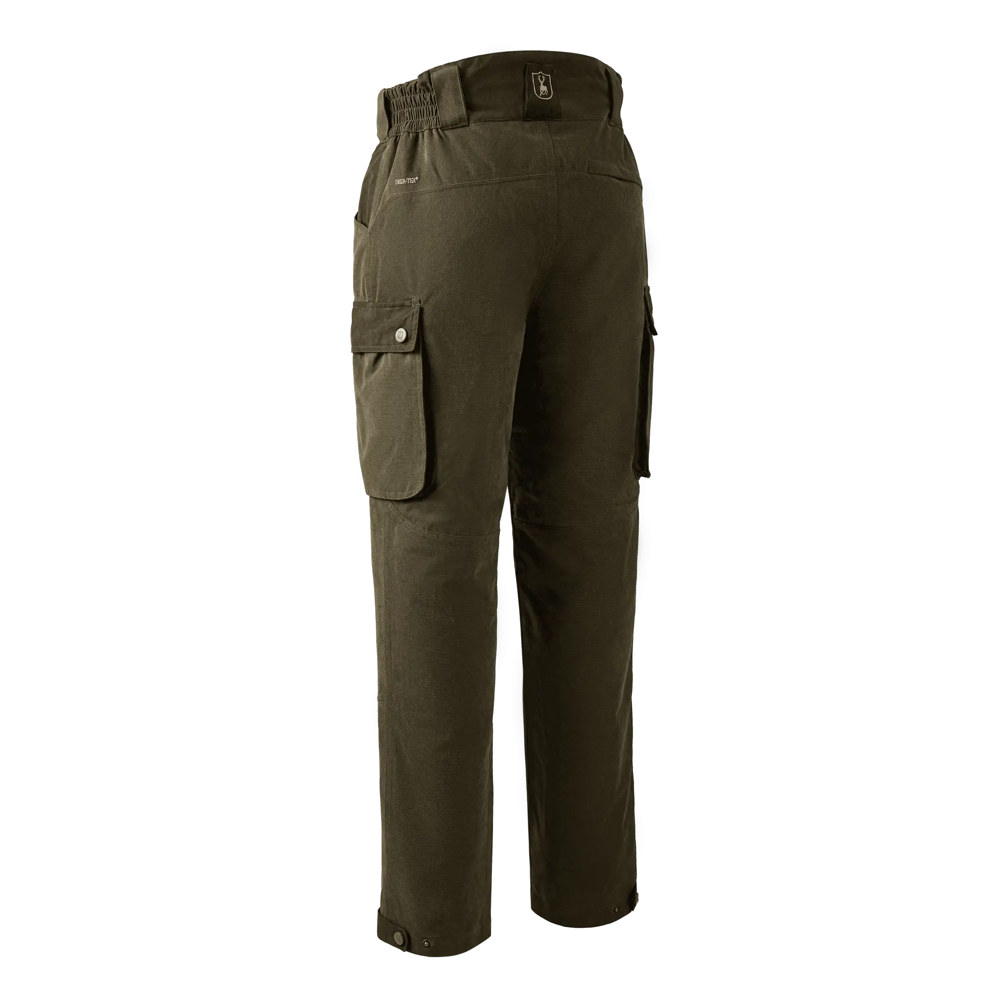 Moderna jaktbyxor med Deer-Tex®-membran, detaljer i imiterat mocka och funktionella fickor.