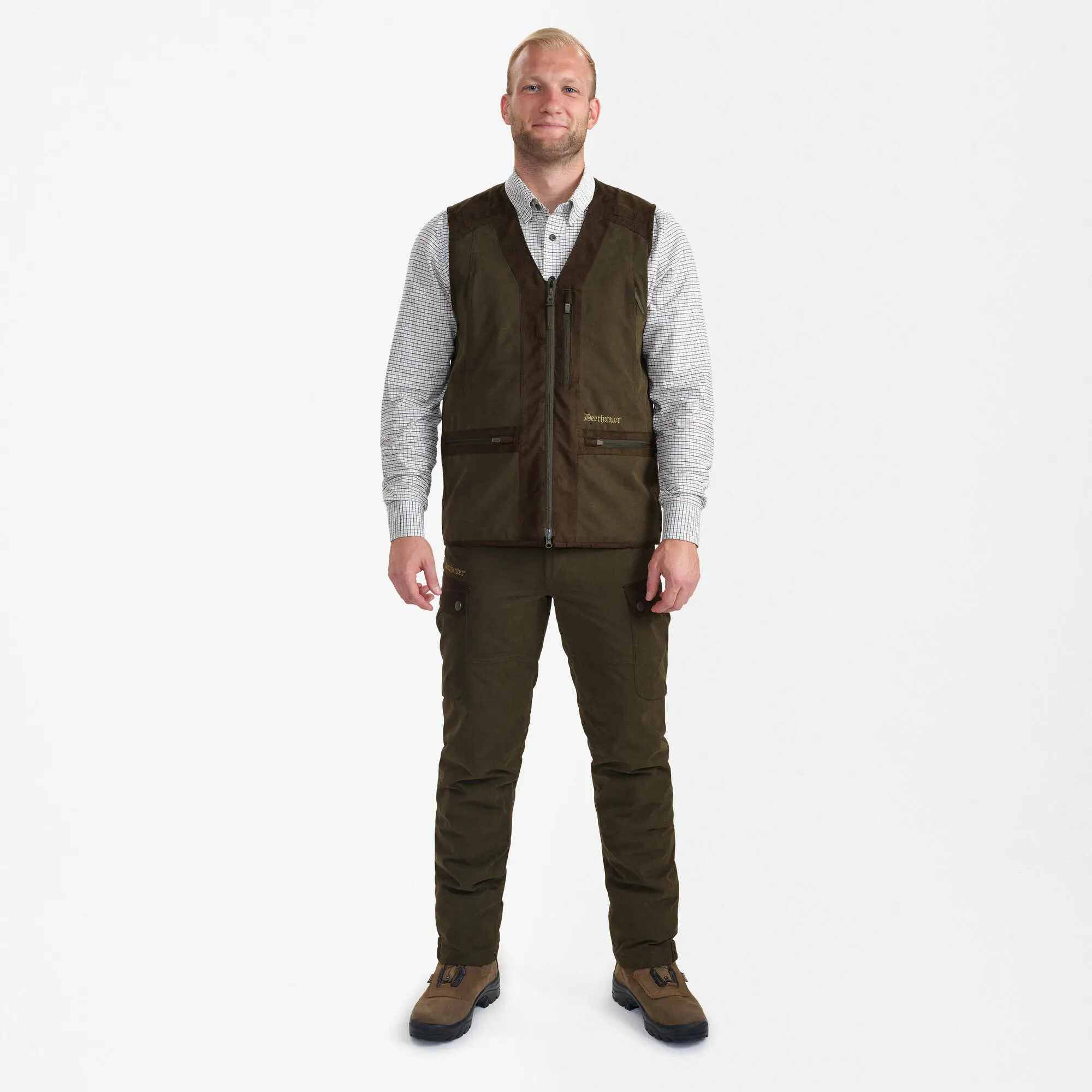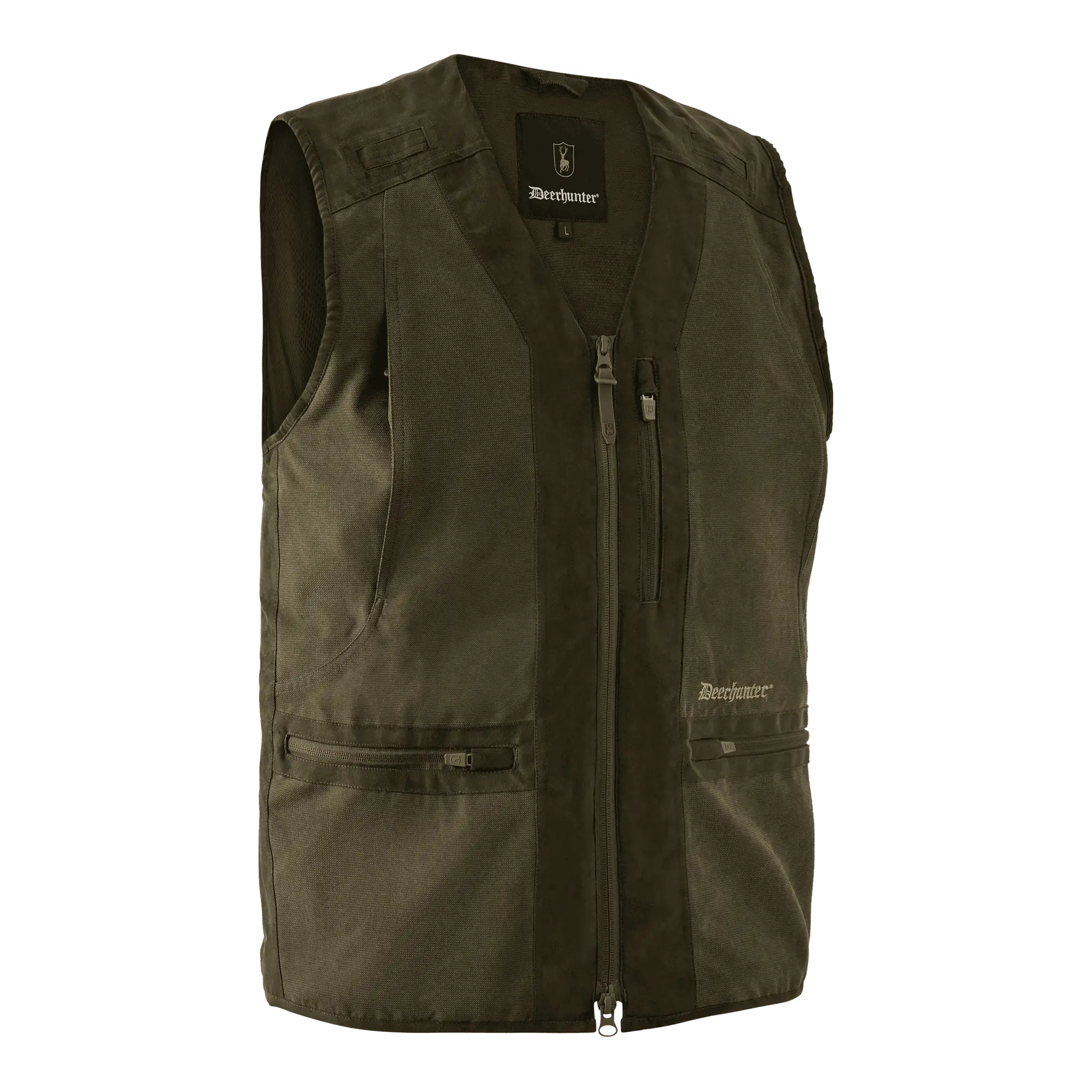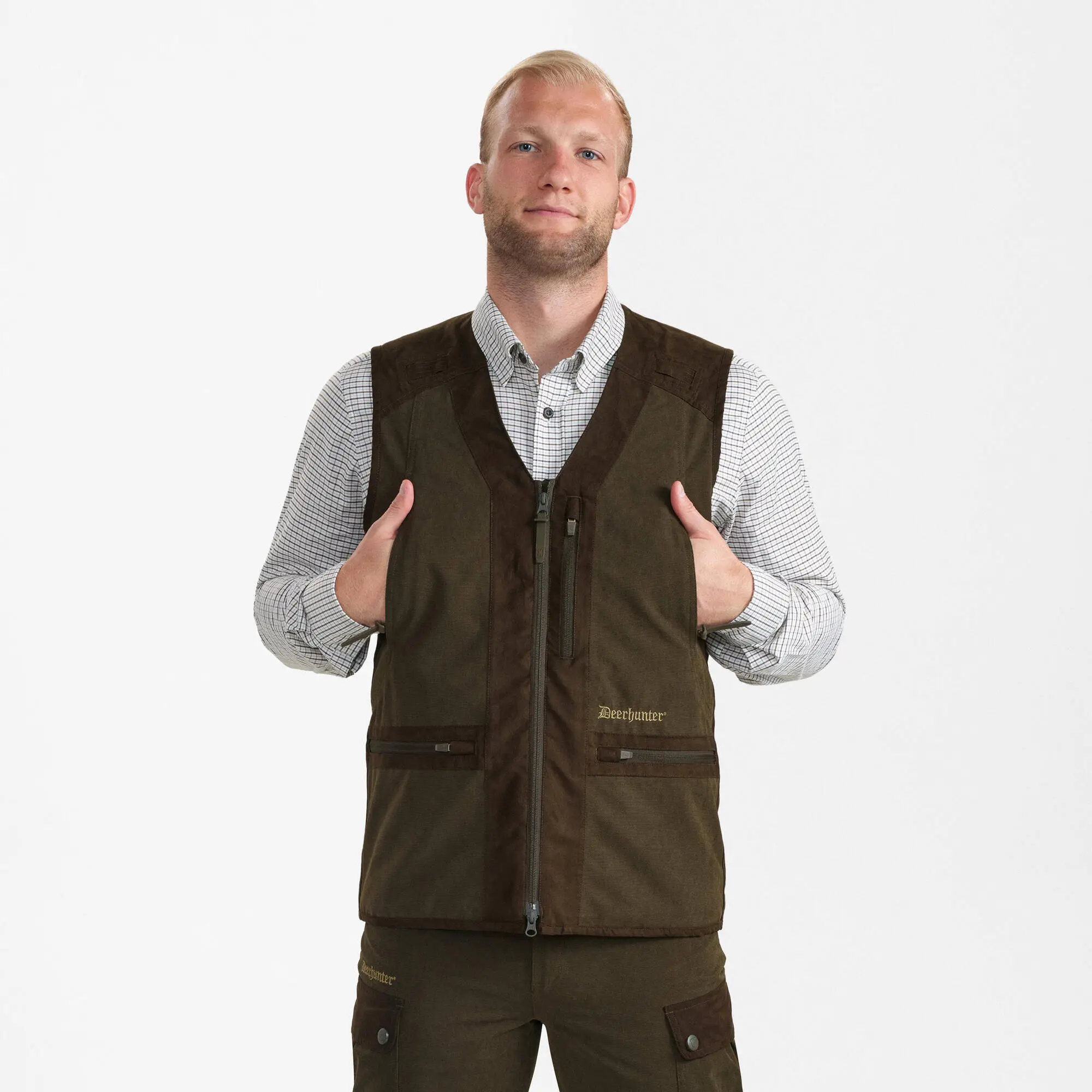 Med ett andningsbart tygsystem tack vare Deerhunter Stormliner® membranen, är denna väst skapad för alla typer av aktivt friluftsliv. Den är vattenavvisande, vilket säkerställer att du håller dig torr även under plötsliga regnskurar. Dess smarta förlängningsdel framtill gör att storleken kan justeras - idealisk för dig som vill ha extra plats för att bära västen över en jacka.