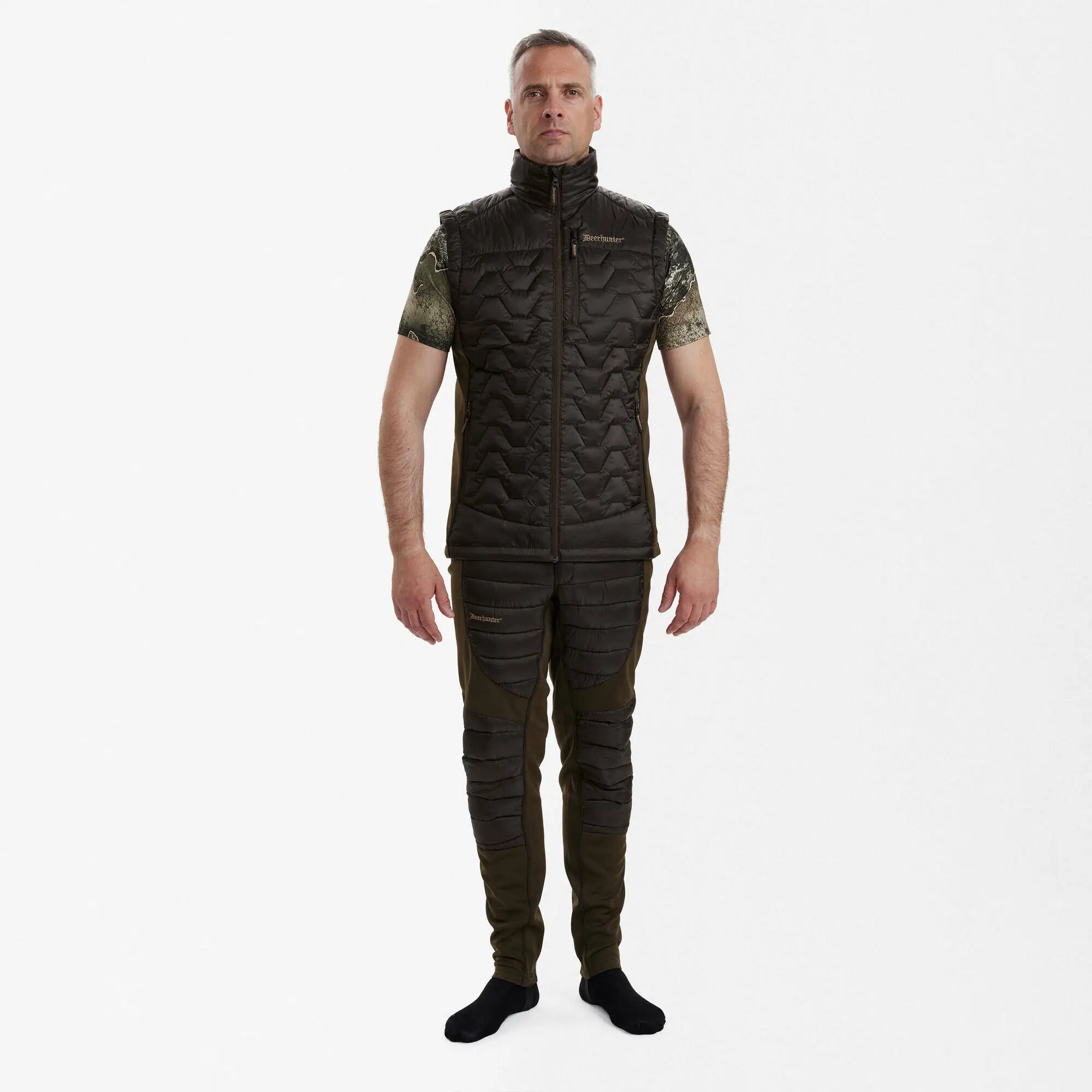 Oavsett om du ger dig ut i skogen för jakt eller bara tar en avkopplande promenad i naturen, kommer du att hitta den här västen oumbärlig. Denna isolerande väst är designad för att behålla optimal värme, vilket gör den till det perfekta valet på kyliga dagar. Tillverkad med en unik polymerteknik är den både vattenavvisande och vindtät, så du kan hålla elementen ute och komforten inne.