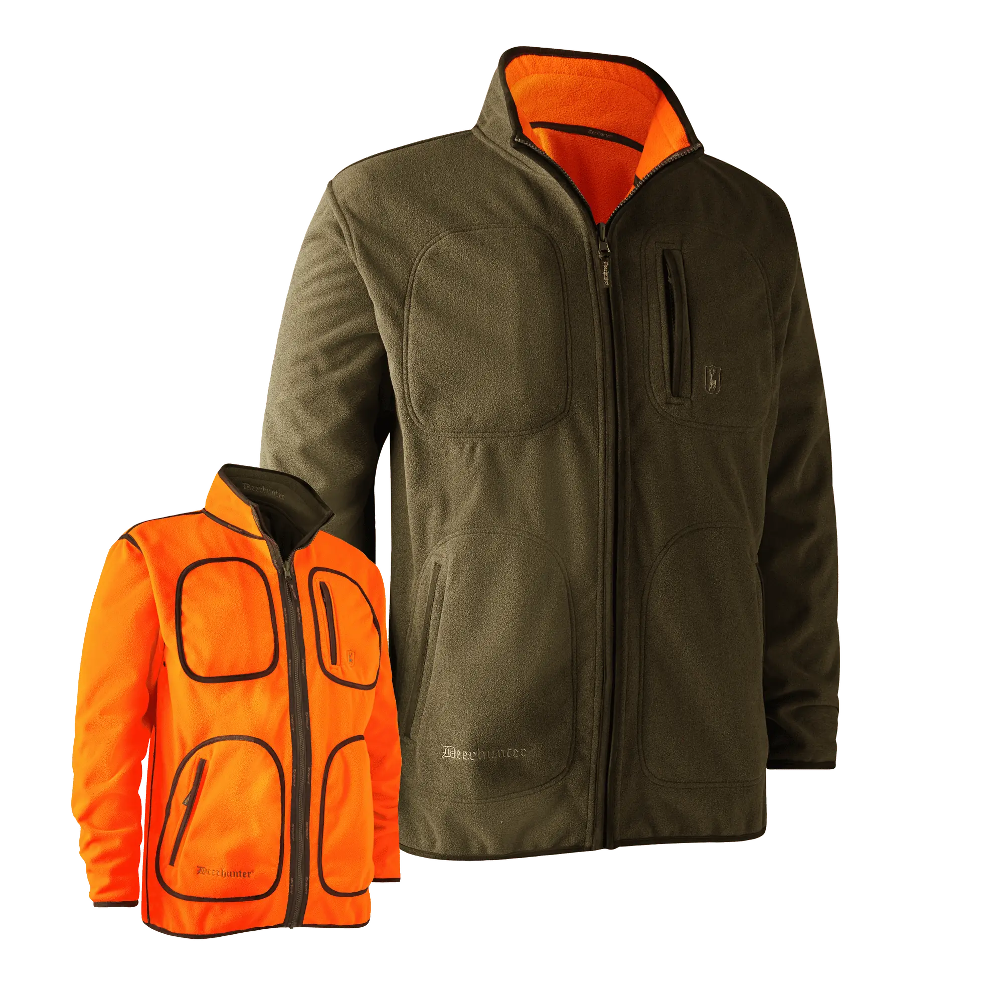 Den mångsidiga jackan är designad för naturälskaren som söker både funktion och stil i sitt ytterplagg. Denna vändbara jacka är en förfinad fusion av komfort och praktisk användning, perfekt för både jakt och friluftsliv. På ena sidan visar den en klassisk, enfärgad ton med eleganta mockakanter som ger ett tidlöst uttryck åt jackans helhetsestetik. Vänder du på jackan framträder en strålande orange nyans som inte bara är stilfull utan också ger hög synlighet under mättade skymningskvällar eller säkra dagar ute i naturen där det är viktigt att synas.