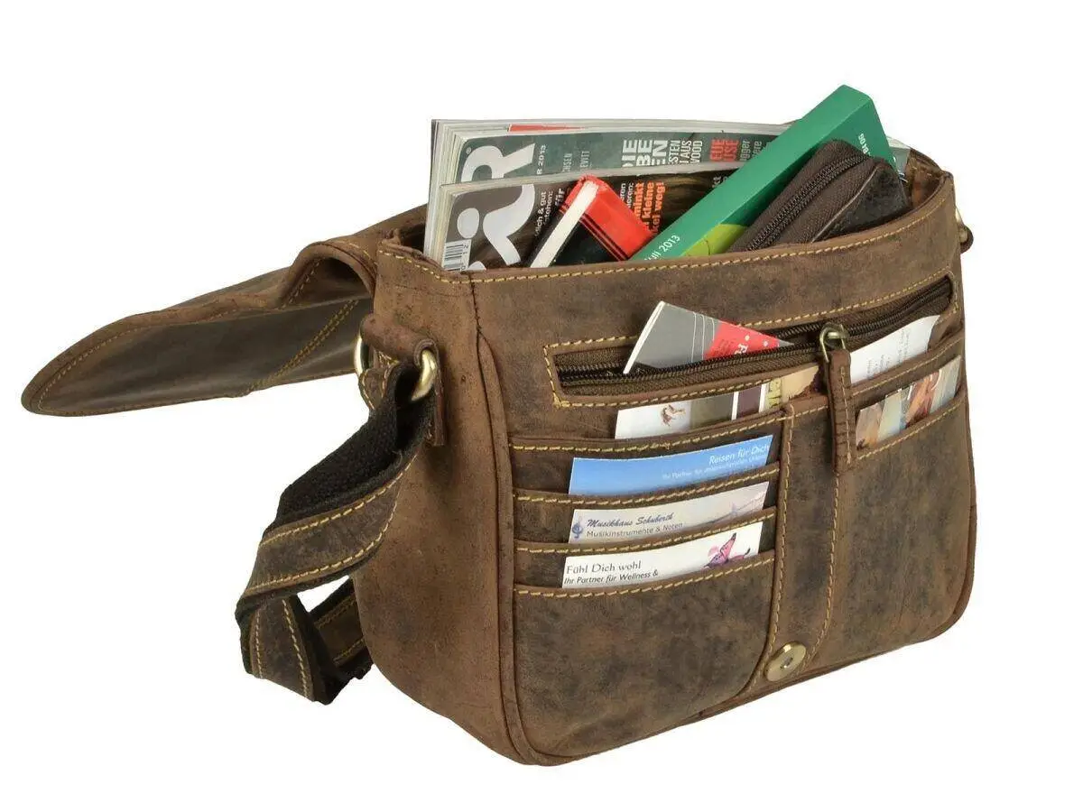 Greenburry axelväska i vintageläder imponerar med praktiska fack och en säker magnetstängning; den unika designen fulländar produkten på ett framgångsrikt sätt.