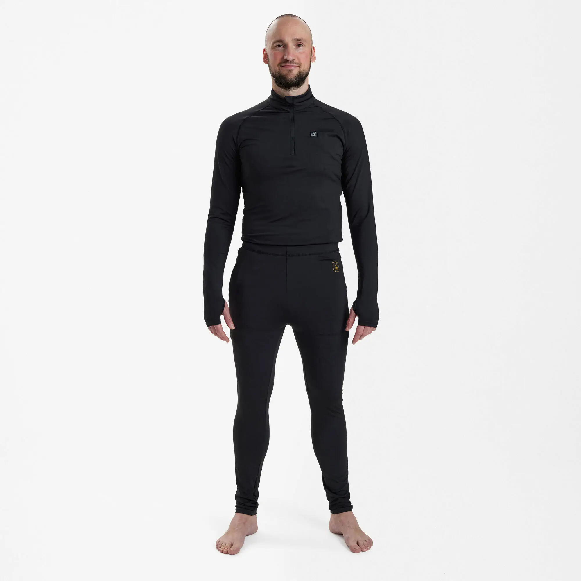 När vintern verkligen biter, och du ska ut på en dag i skogen eller på tundran, blir valet av rätt underställ avgörande. Komfort och värme förenas i dessa avancerade leggings, som är designade för att stå emot de allra kallaste utmaningarna. Det integrerade värmesystemet, smart inbyggt i tyget, ser till att du håller dig varm även när temperaturen sjunker drastiskt. Värmesystemet består av ett diskret element placerat strategiskt framtill på låren, som du enkelt styr med en på/av-knapp. Denna innovativa funktion är en riktig räddare när arktiska vindar biter och ger dig tre individuella värmenivåer. Det gör att du kan anpassa värmen så att den passar exakt efter de förhållanden du är i.