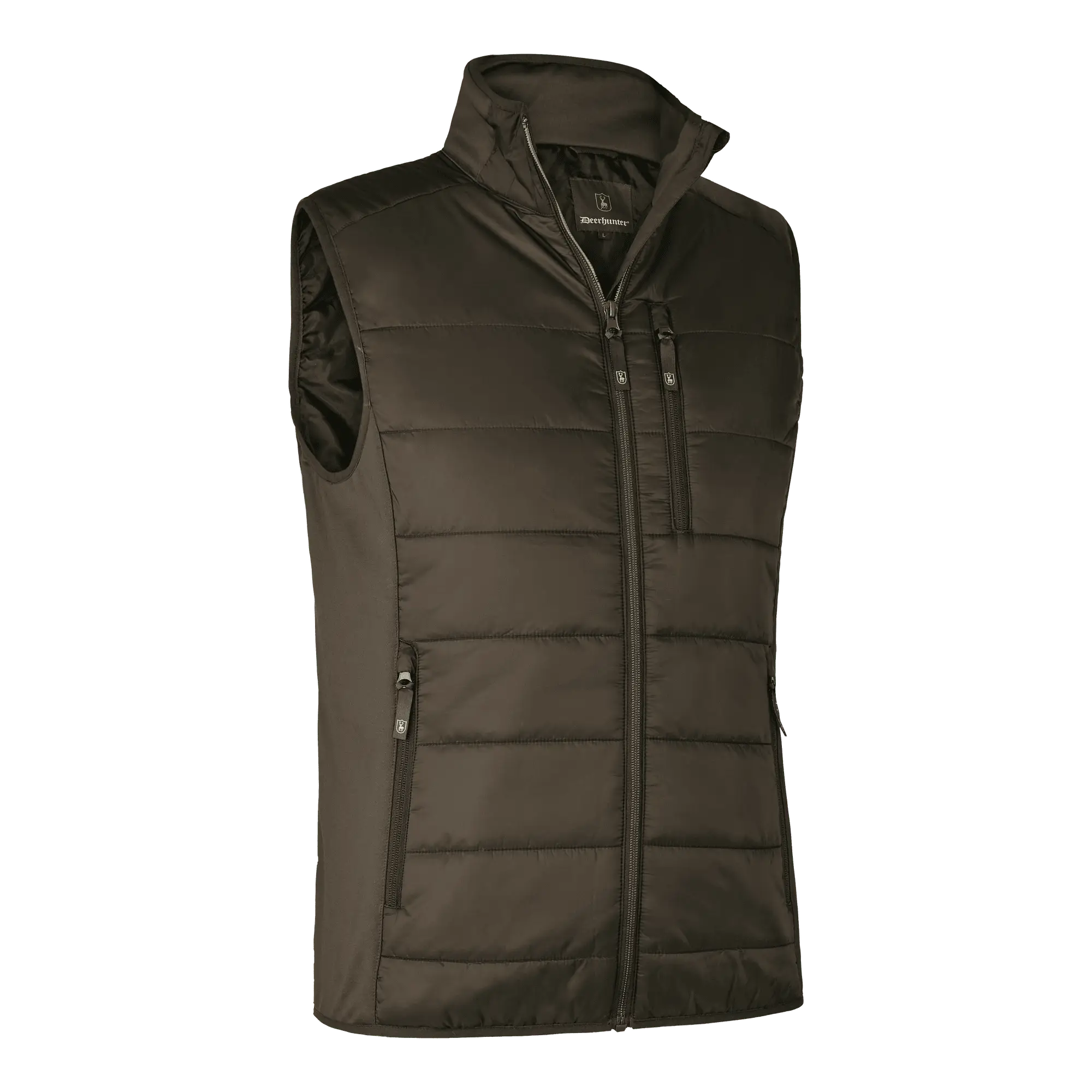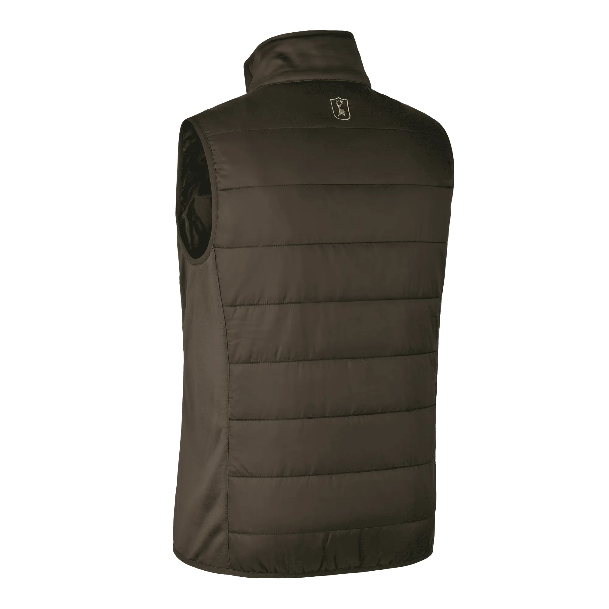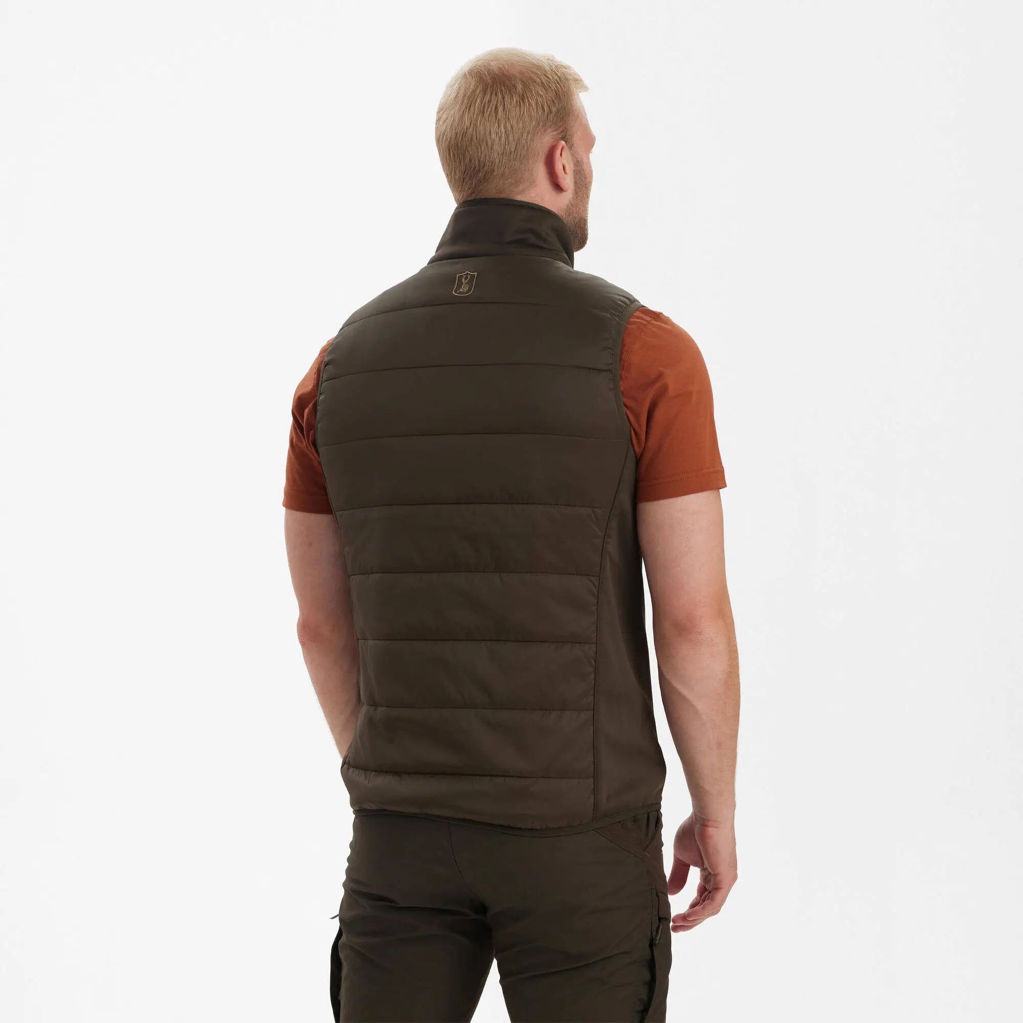 Det tvåvägsstretchiga tyget och den quiltade isoleringen ger en hittills osedd grad av flexibilitet och rörelsefrihet, samtidigt som västen formar sig efter kroppen och dess behov. Det gör den idealisk för jaktupplevelser där rörlighet och värme är avgörande. Förutom de adaptiva och stretchiga panelerna är västen utrustad med flera praktiska detaljer, som en bröstficka med dragkedja samt två ytterligare dragkedjefickor för tillräcklig förvaringsplats.