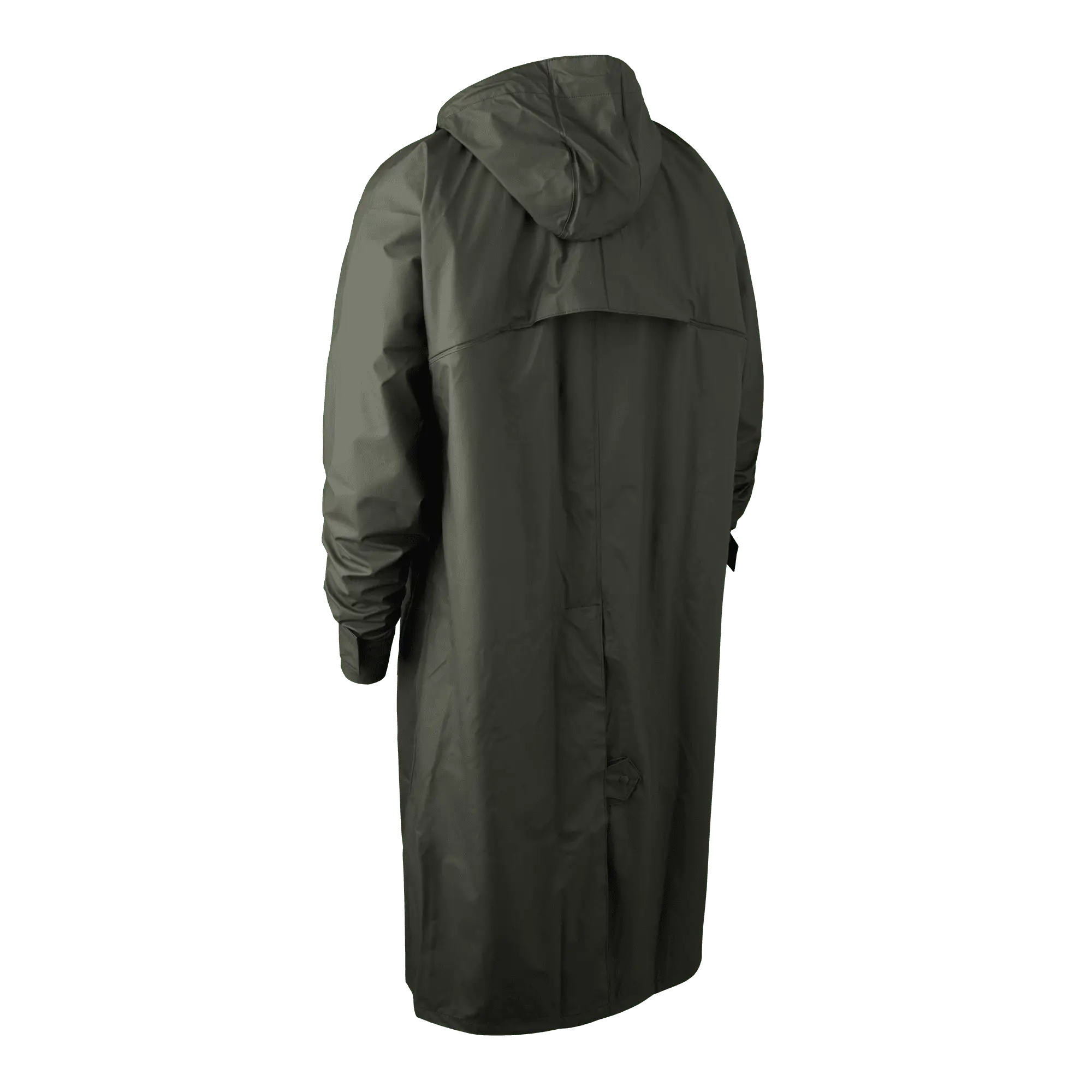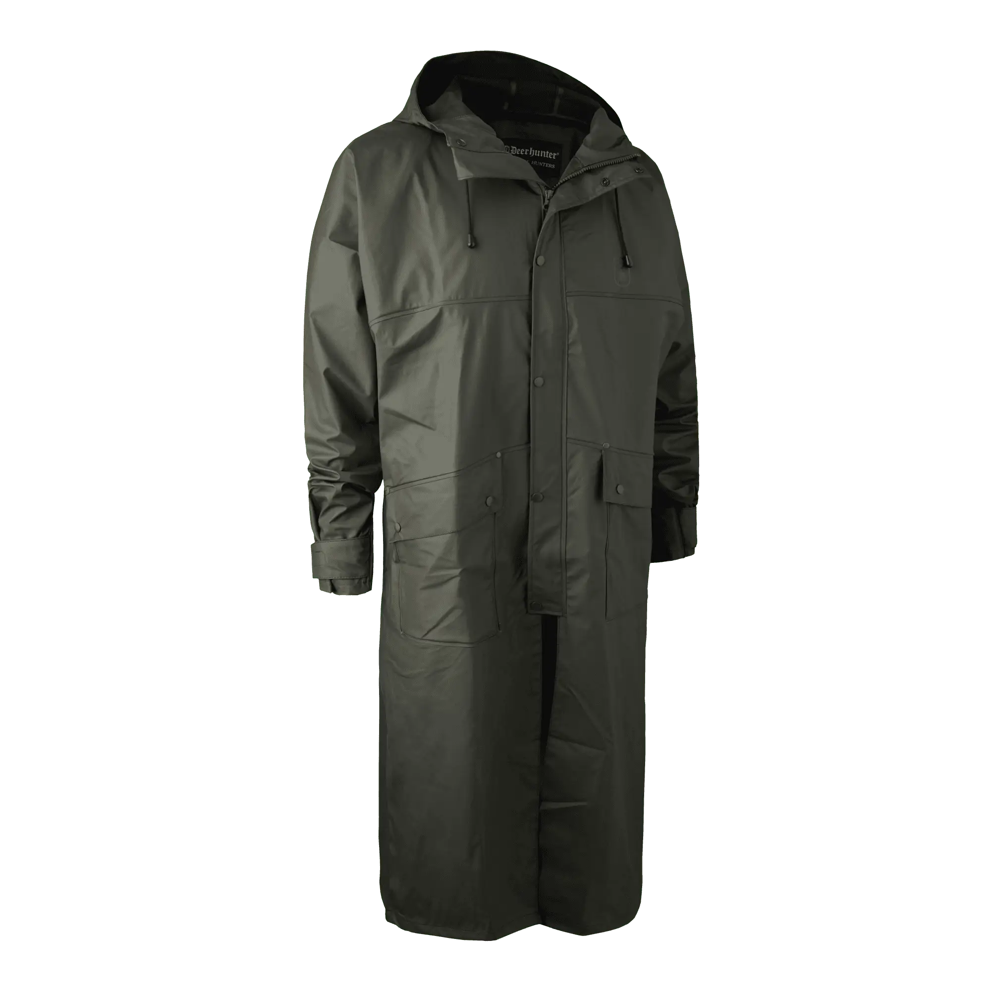 Vattentät regnrock med huva, ventilation och framfickor för optimal komfort.