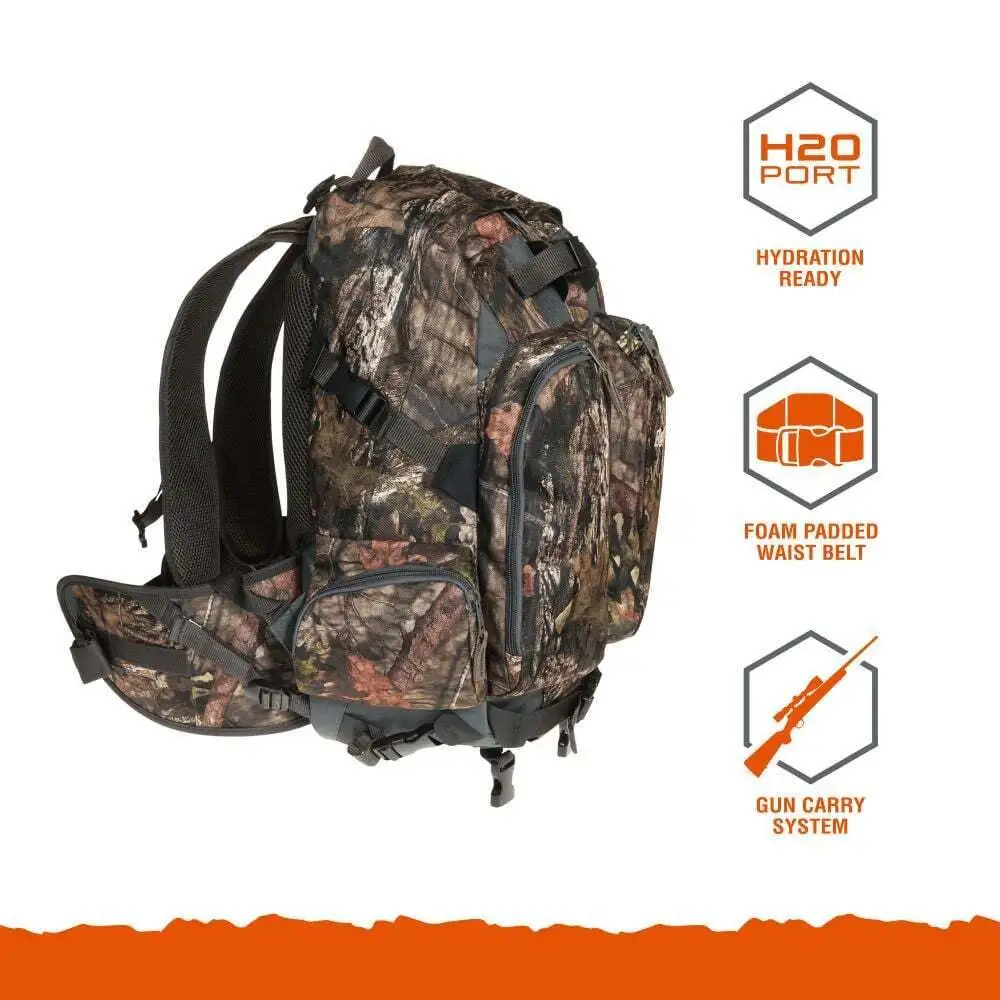 - MOSSY OAK® RYGG SÄCK: Justerbart midjebälte (upp till 138 cm) samt vadderade och justerbara axelremmar och bröstrem ger maximal komfort och säkerhet under användning. H2O-hydreringsporten är en extra funktion som ger dig åtkomst till vatten när du behöver det som mest.