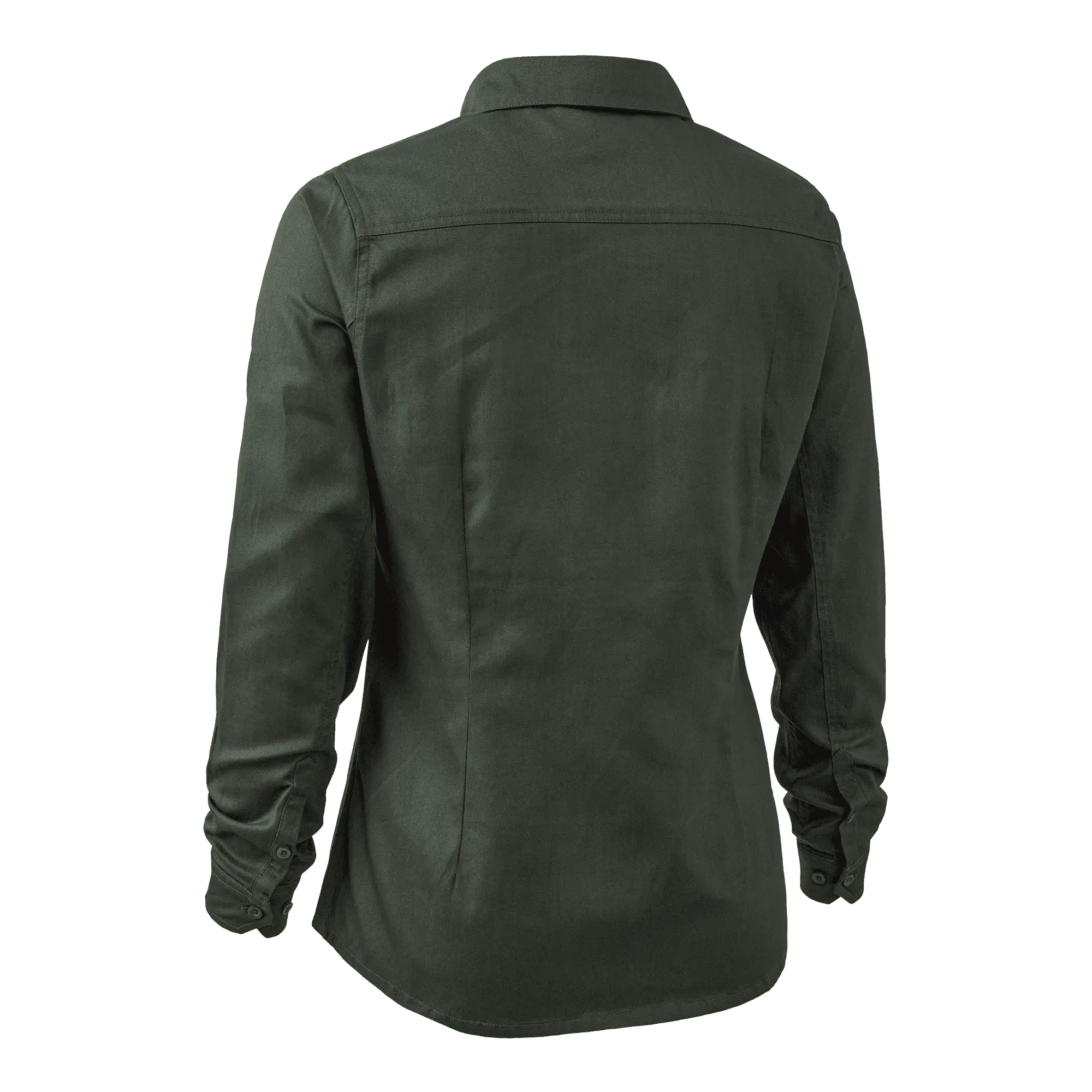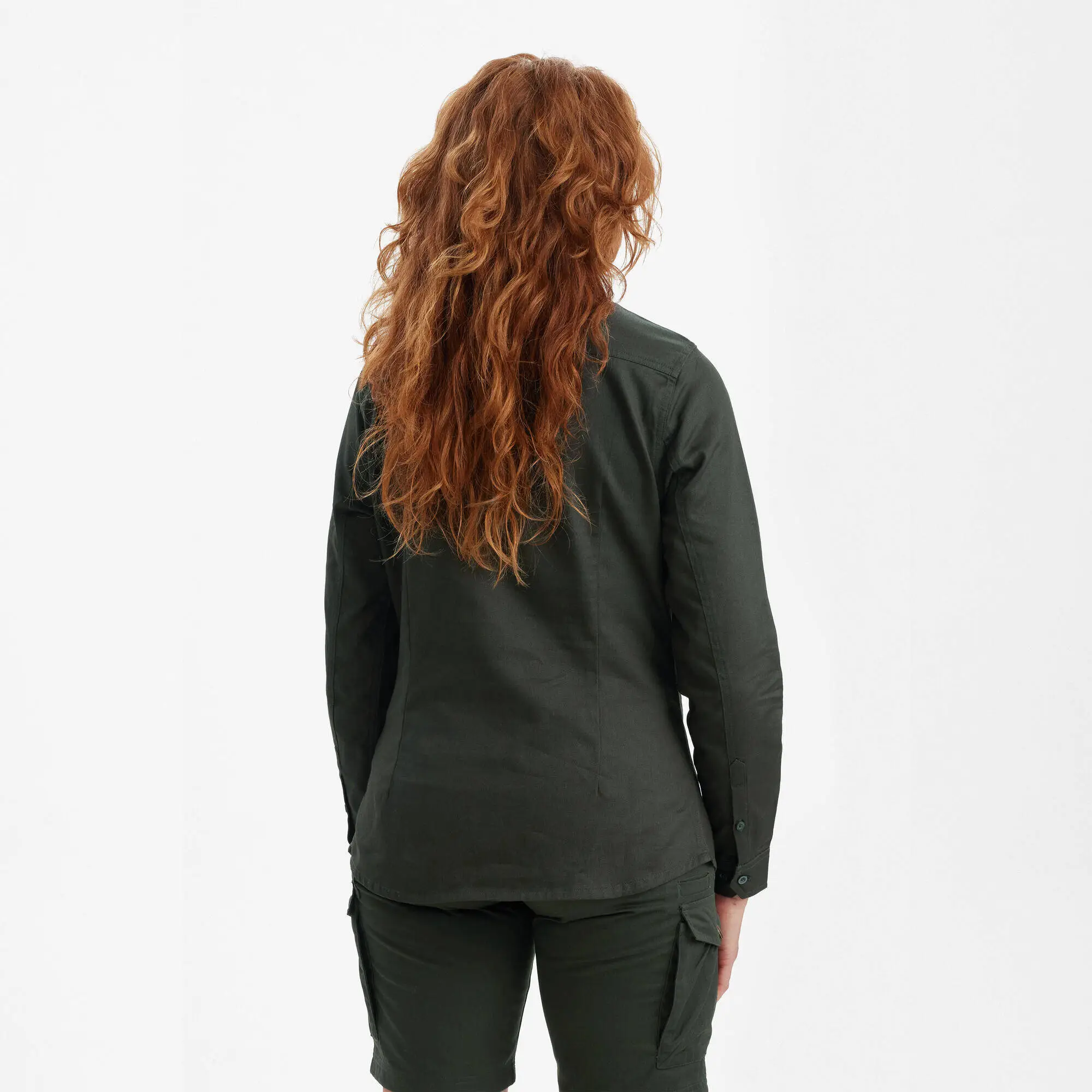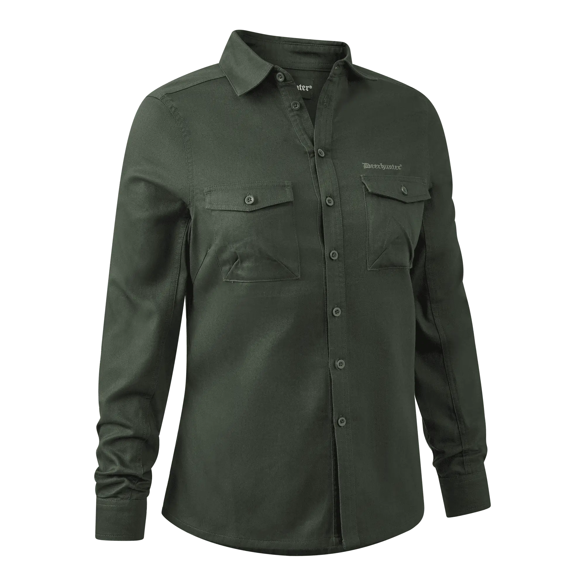 Tanken bakom designen är enkelhet och elegans. De bakåtriktade insnitten ger en smickrande effekt och framhäver en vacker, feminin silhuett. De bidrar till en passform som inte bara ser skarp ut utan också sitter som den ska när du rör dig. Konstruktionen gör att skjortan passar lika bra till en avslappnad brunch som på mer planerade jaktutflykter.