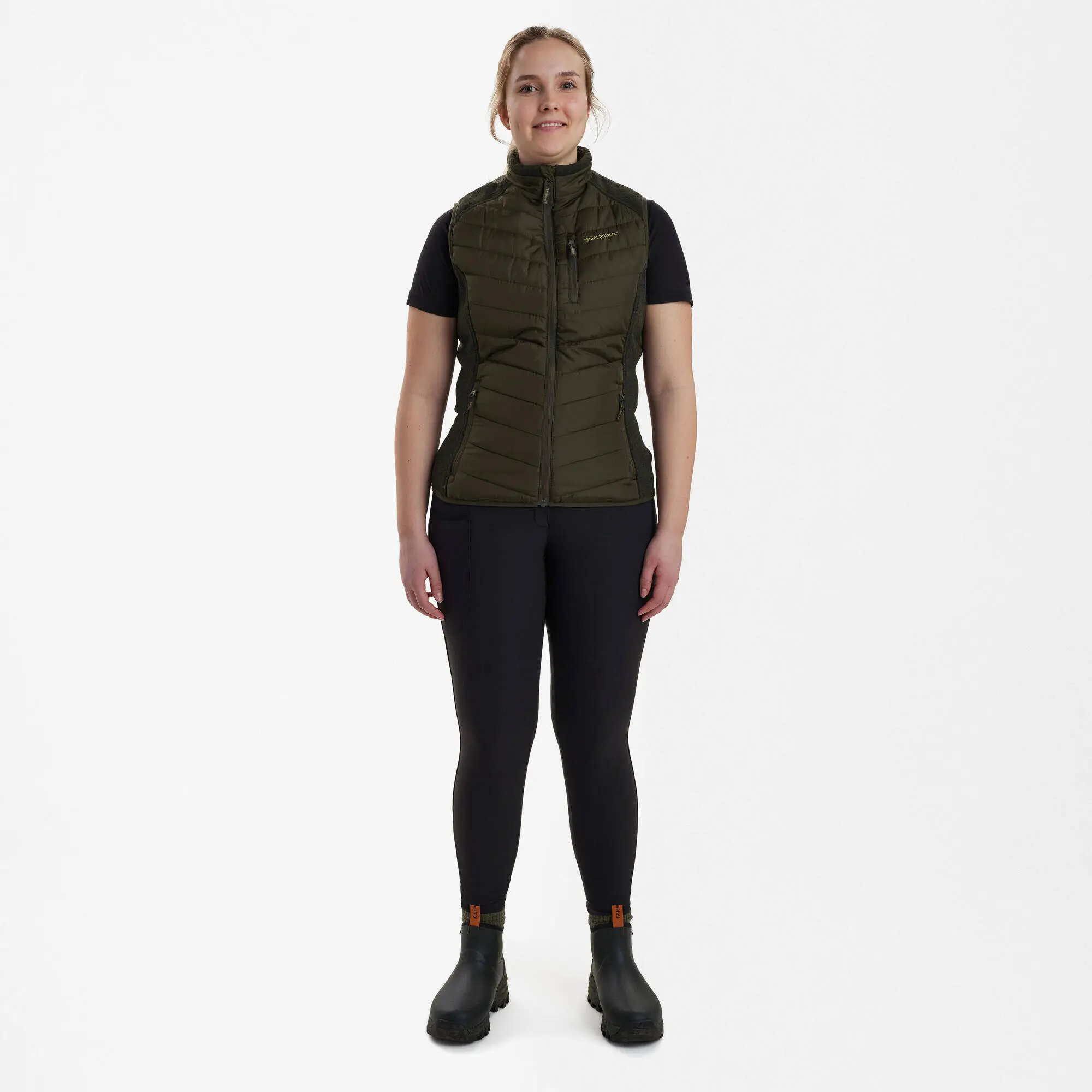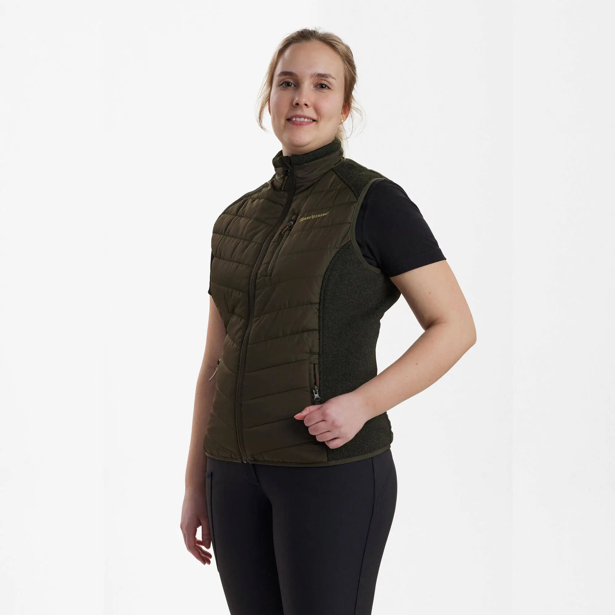 Den lätta fyllningen är gjord av 100% polyester, vilket ser till att västen förblir lätt och bekväm att bära samtidigt som den är mycket effektiv för att hålla kylan ute. Deer-Tex® Temp-materialet på 160 g/m² bidrar till västens isolerande egenskaper, så att du kan känna dig varm och bekväm även när vädret är som sämst. Med sitt vindtäta tyg håller västen vinden ute, medan den andningsbara membranen ser till att du inte blir överhettad under aktivitet.