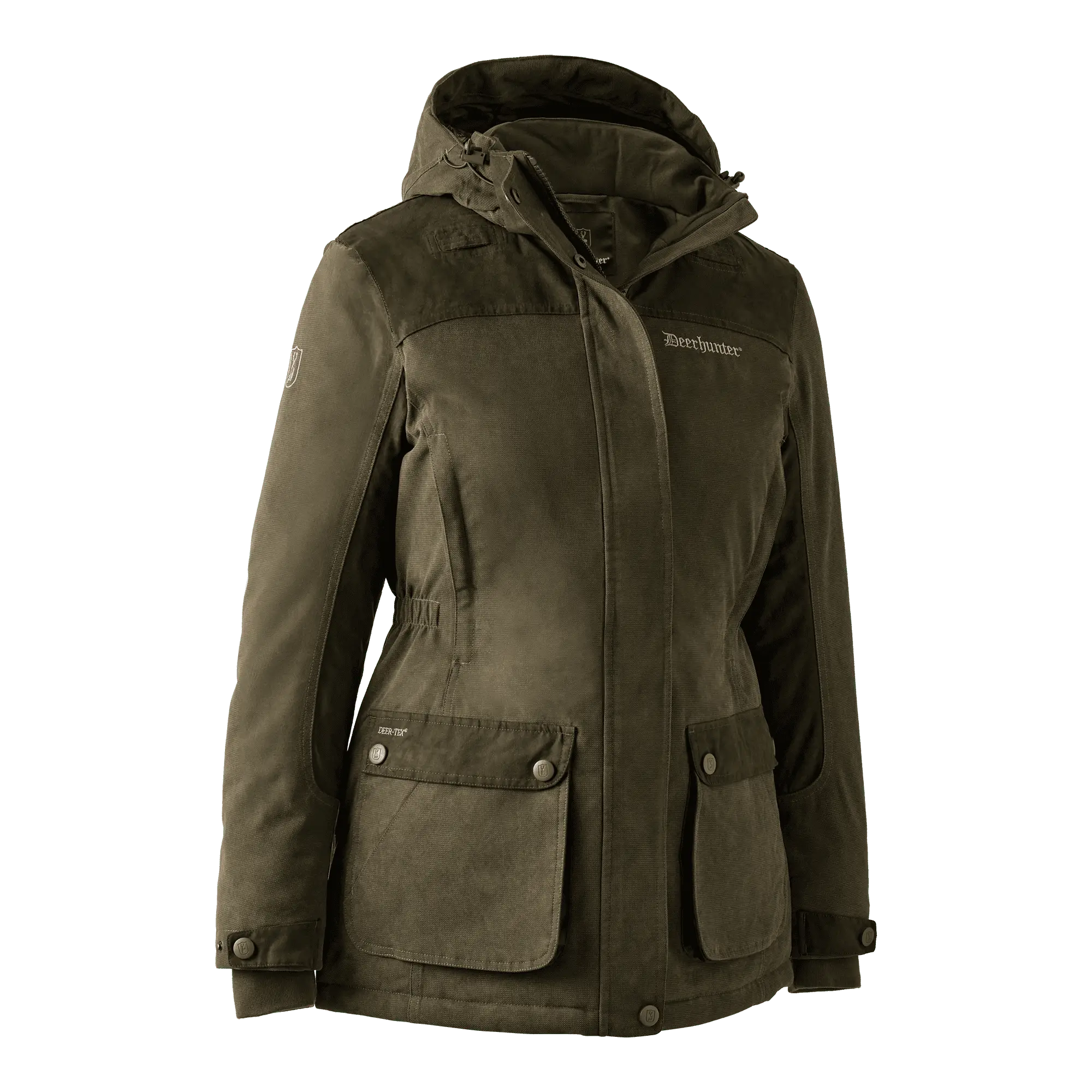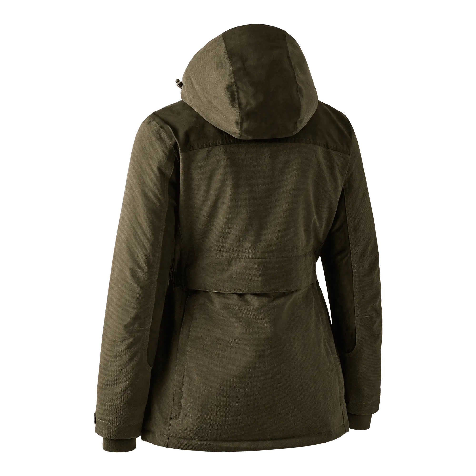 Eleganta detaljer i konstmocka tillför en känsla av lyx och tradition till jackan, medan den avtagbara huvan ger flexibilitet för olika väderförhållanden. De elastiska panelerna i midjan framhäver en feminin siluett och säkerställer en kroppsnära passform. Denna jacka är resultatet av en omsorgsfull designfilosofi som inte bara fokuserar på estetik utan även på hög prestanda. Med en rad funktionella detaljer som en vattentät och delvis avtagbar sittficka på ryggen — som både fungerar som sittdyna och håller kylan borta — är du garanterad komfort under längre vistelser i naturen.