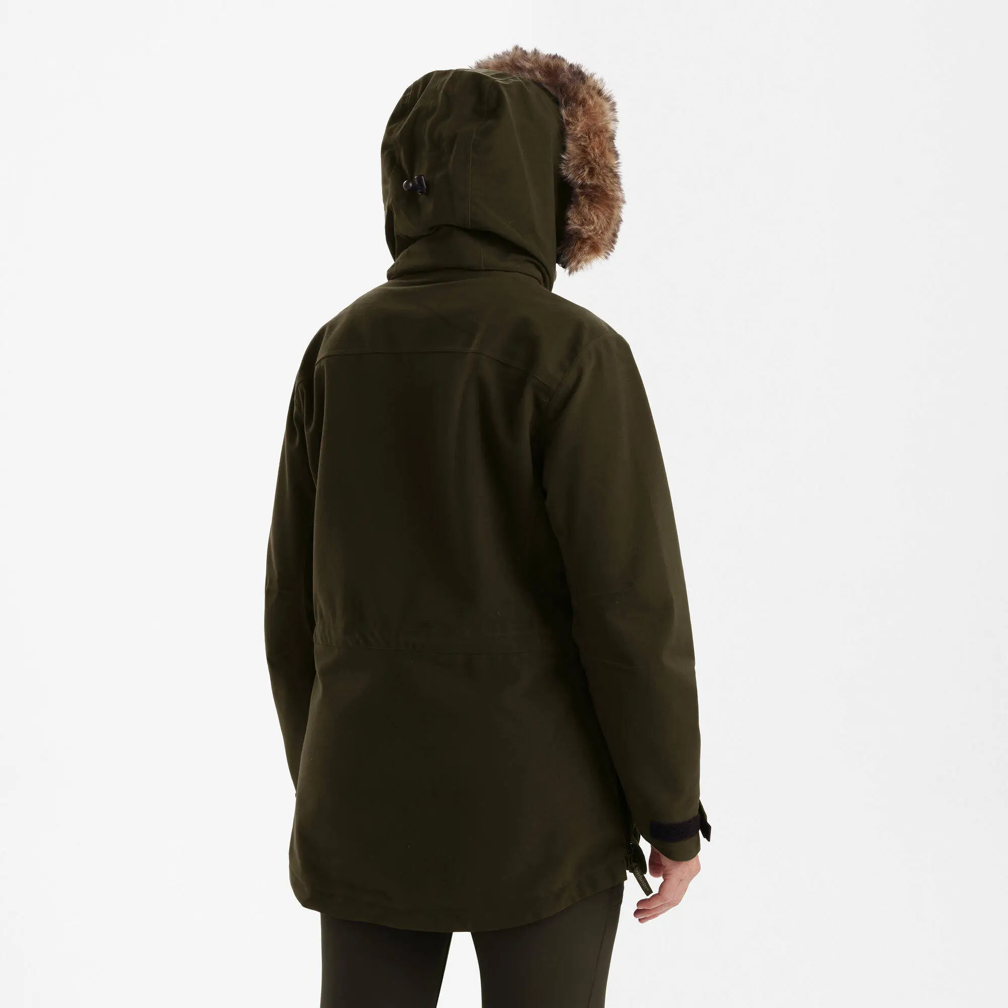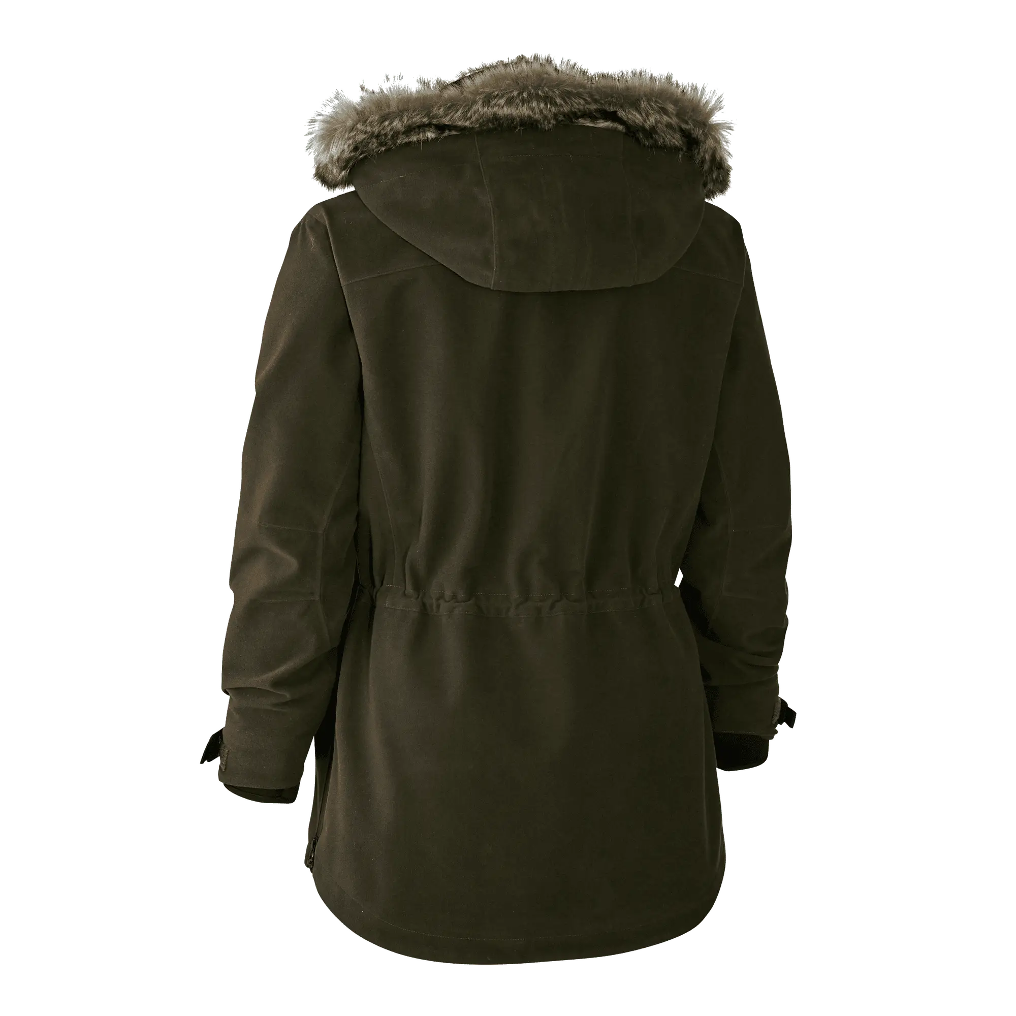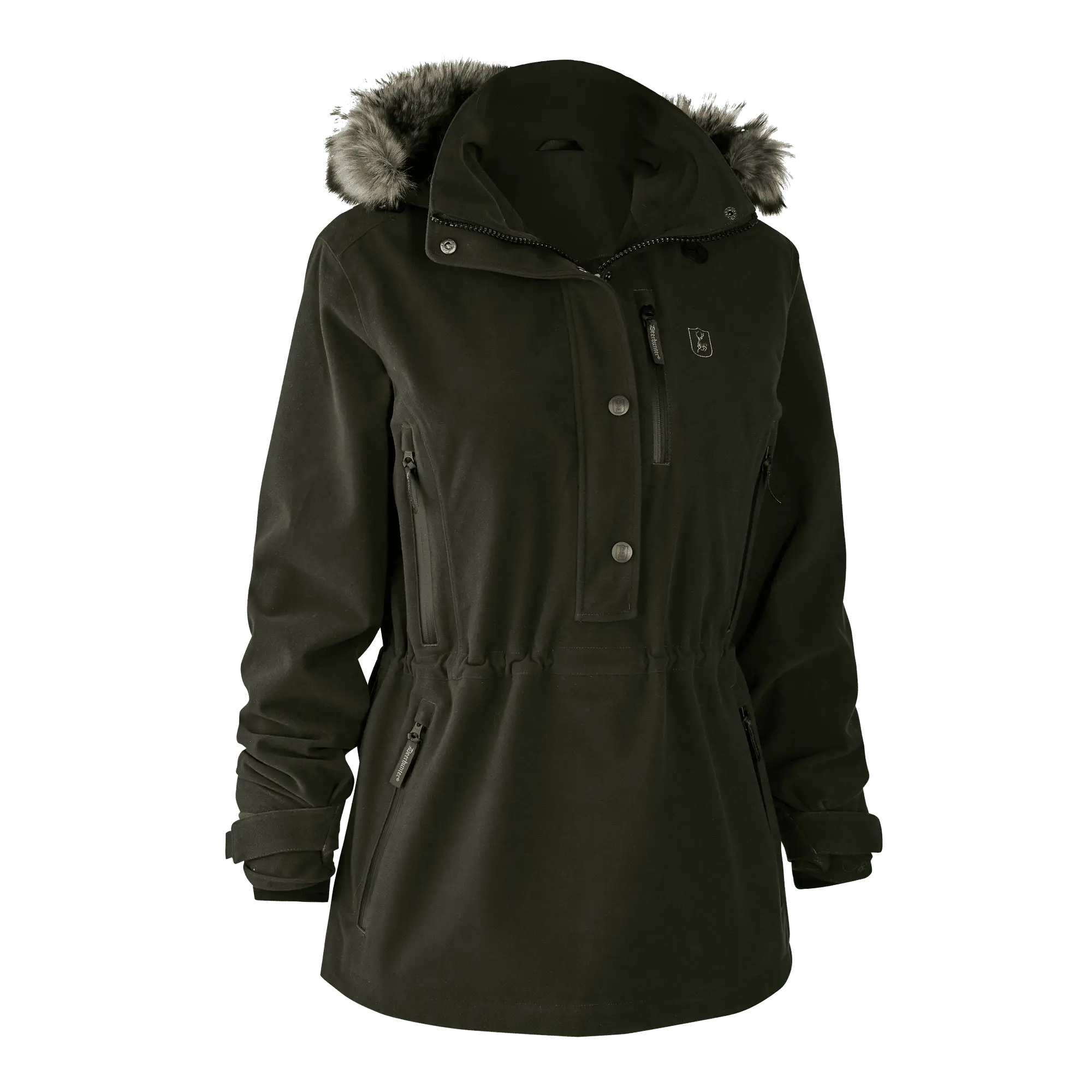 Alla detaljer i den här jackan är noga genomtänkta, från den avtagbara huvan och fuskpälsen som låter dig förändra både utseende och funktion, till neoprenärmarna som håller kall luft helt ute. Så oavsett om du ger dig ut i den dimmiga morgonen eller njuter av nattdagg, kan du lita på att du inte bara ser bra ut utan också känner dig fantastiskt bekväm. Med kvinnors behov i åtanke är denna anorak designad för att inte bara möta utan överträffa dina förväntningar på en säsongsjacka.