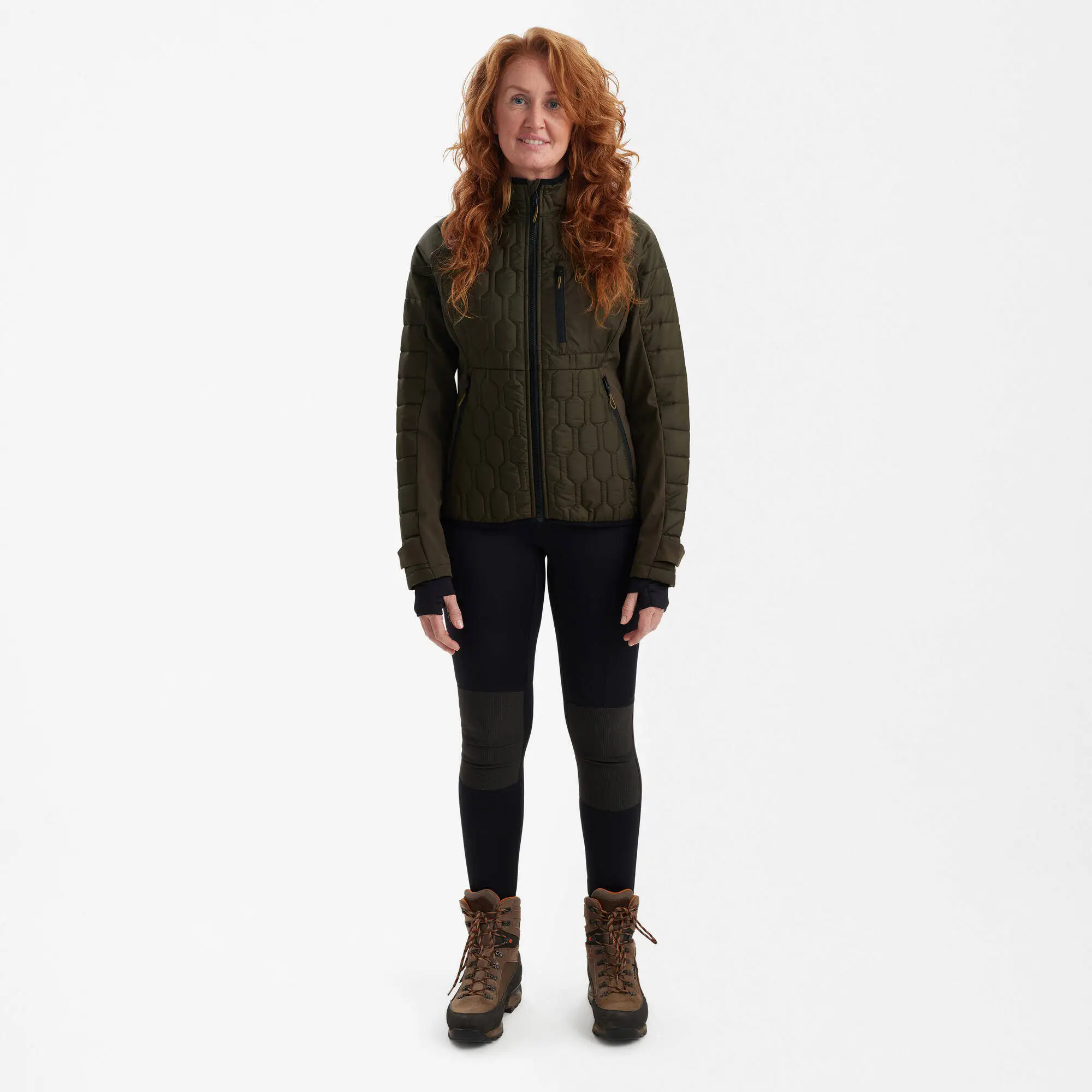 Det är detaljer som elastisk kantband i både krage och fåll, samt justerbara muddar med rem och kardborre, som gör jackan särskilt bekväm och anpassningsbar efter dina behov. Det är en perfekt jacka för kvinnor som vill ha ett pålitligt yttre plagg för varje äventyr och vardagliga ärenden, och som uppskattar en mångsidig design som kompletterar ett aktivt liv. Oavsett om du står inför en blåsig dag, en kall morgon eller en kvällspromenad i kyligare väder, kommer denna jackas quiltade värme att hålla dig bekväm från början till slut.