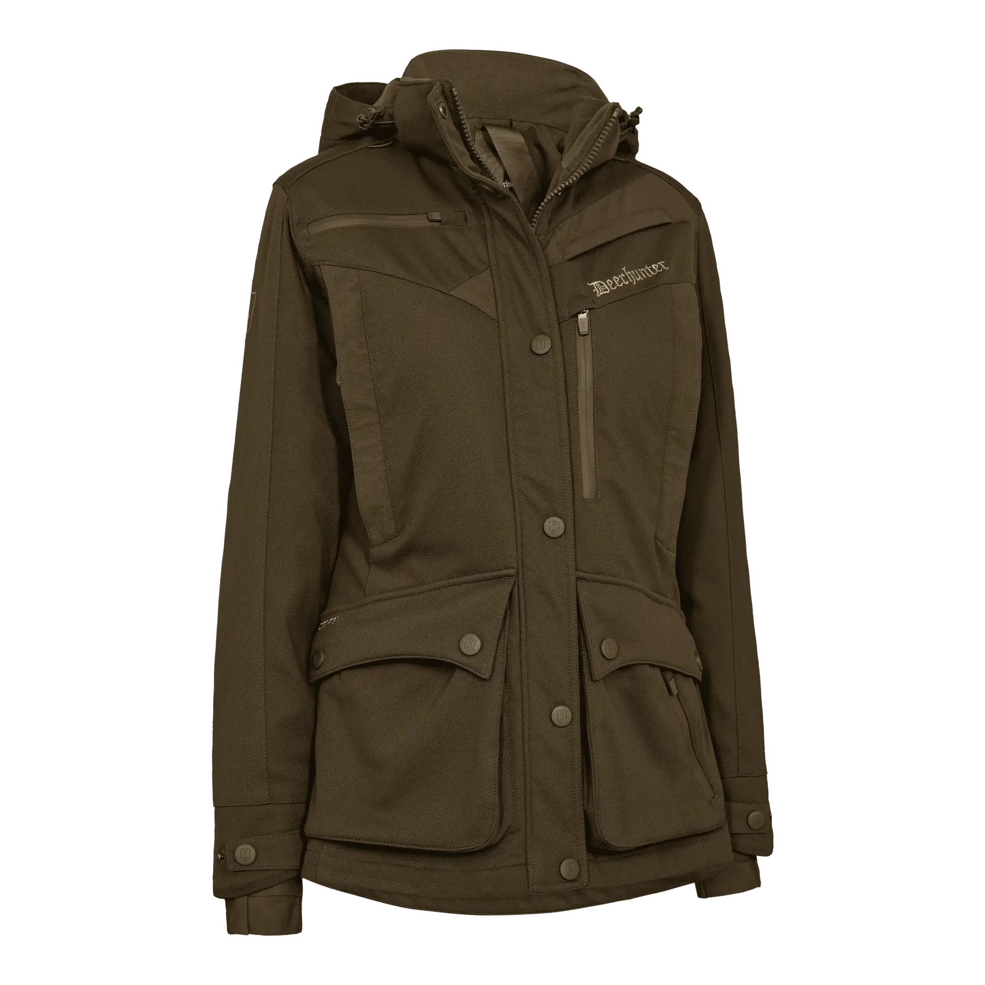 Jackan är försedd med en avtagbar huva som ger flexibilitet beroende på väder, medan tvåvägsdragkedjor framtill gör det enkelt att justera ventilation och passform. När det gäller förvaring finns det ingen brist på praktiska lösningar. Med flera fickor, inklusive radioficka med vattentät dragkedja, bröstfickor med vattentät dragkedja och två handvärmarfickor, är du täckt oavsett vad du behöver plats för.