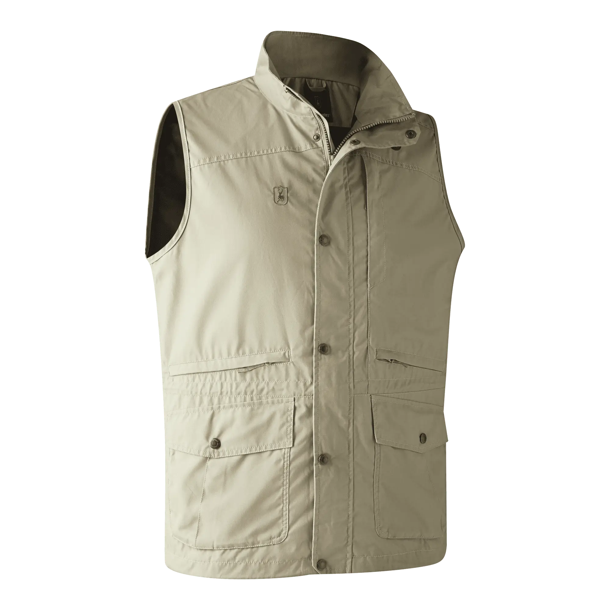 Västens många fickmöjligheter säkerställer att du alltid har plats för nödvändiga verktyg och personliga föremål. Med en bröstficka och två horisontella fickor, alla med dolda blixtlås, kan du tryggt förvara dina värdesaker utan rädsla för att tappa dem under aktiviteter. Dessutom finns två framfickor med boxveck som ger extra plats för större föremål. Det praktiska designelementet stannar inte där; det finns också en viltficka med blixtlås, perfekt för jägaren eller den äventyrslystne som vill ha sin utrustning nära till hands.