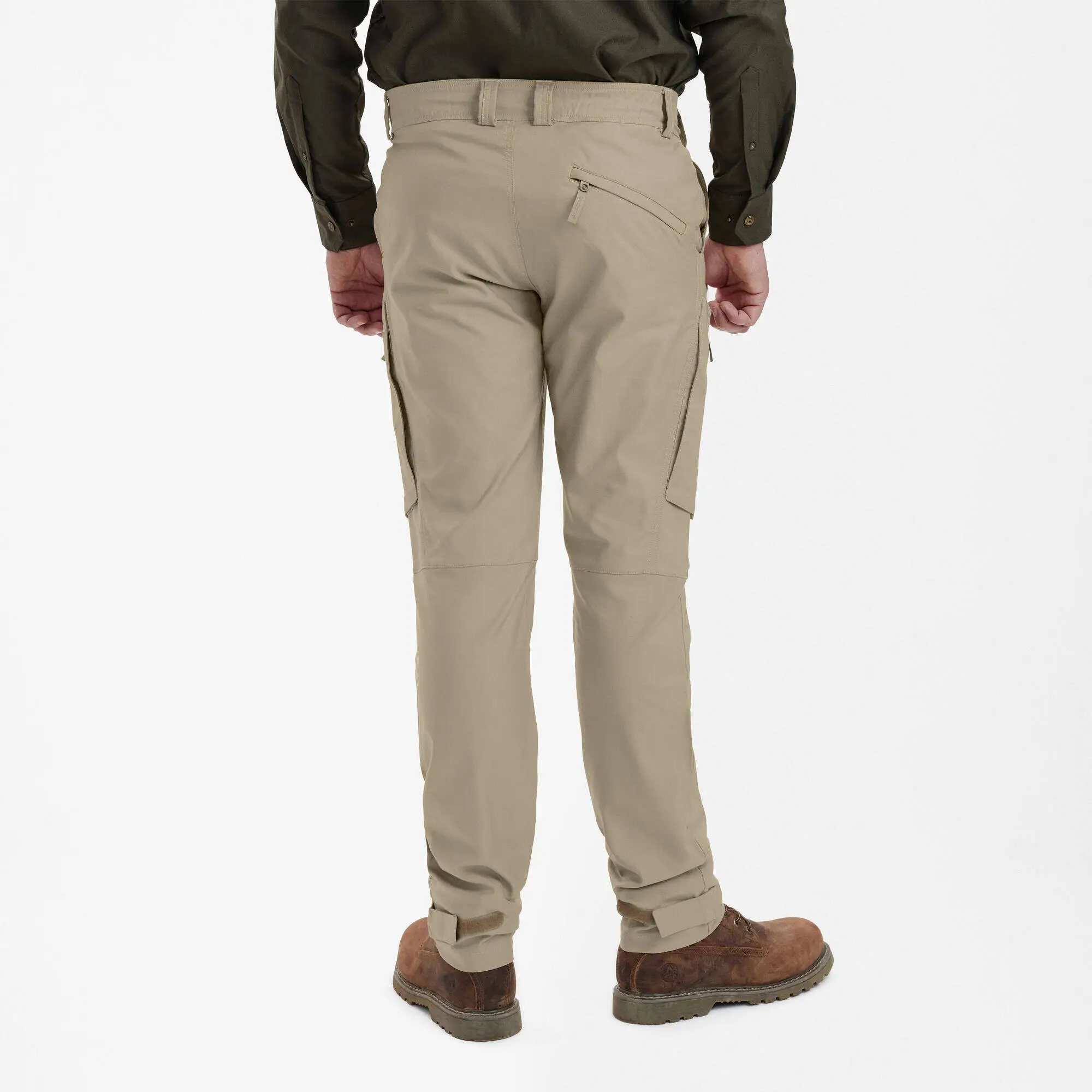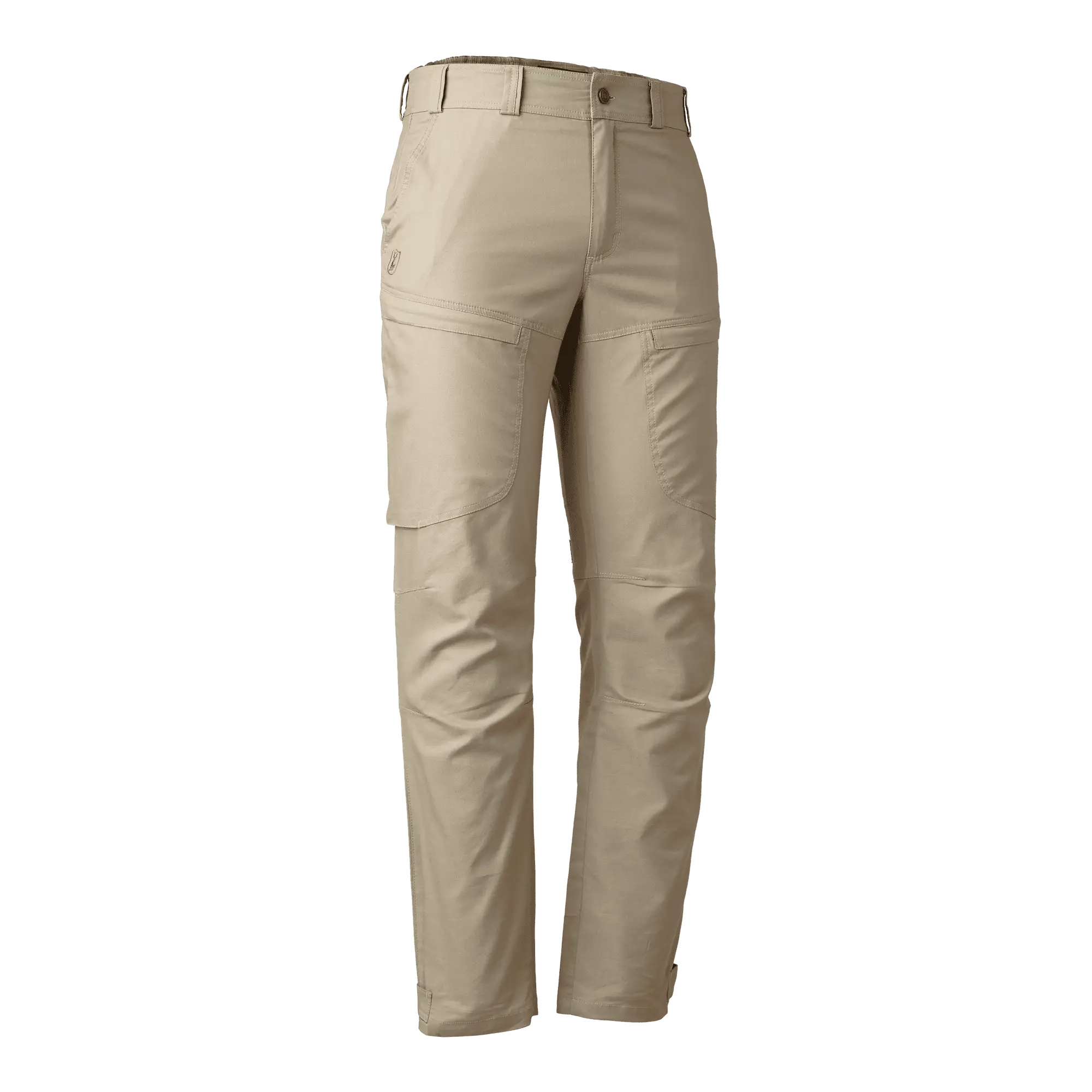 Komfort är en central del av designen, med elastiska paneler i midjan som ger dig en bekväm passform som lätt anpassar sig efter dina rörelser. Den justerbara stängningen vid anklarna säkerställer att dina byxor inte bara erbjuder en perfekt passform utan också praktisk användbarhet när du rör dig i varierande terräng. För dem som uppskattar funktion och tillgänglighet har byxorna flera fram- och bakfickor, inklusive två rymliga lårfickor med dolda dragkedjor för säker förvaring av dina värdesaker, samt en diskret knivficka. Det ger den mångsidighet du förväntar dig av ett kvalitetsplagg.