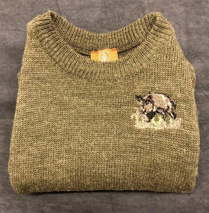Stickad tröja med vildsvinsmotiv
