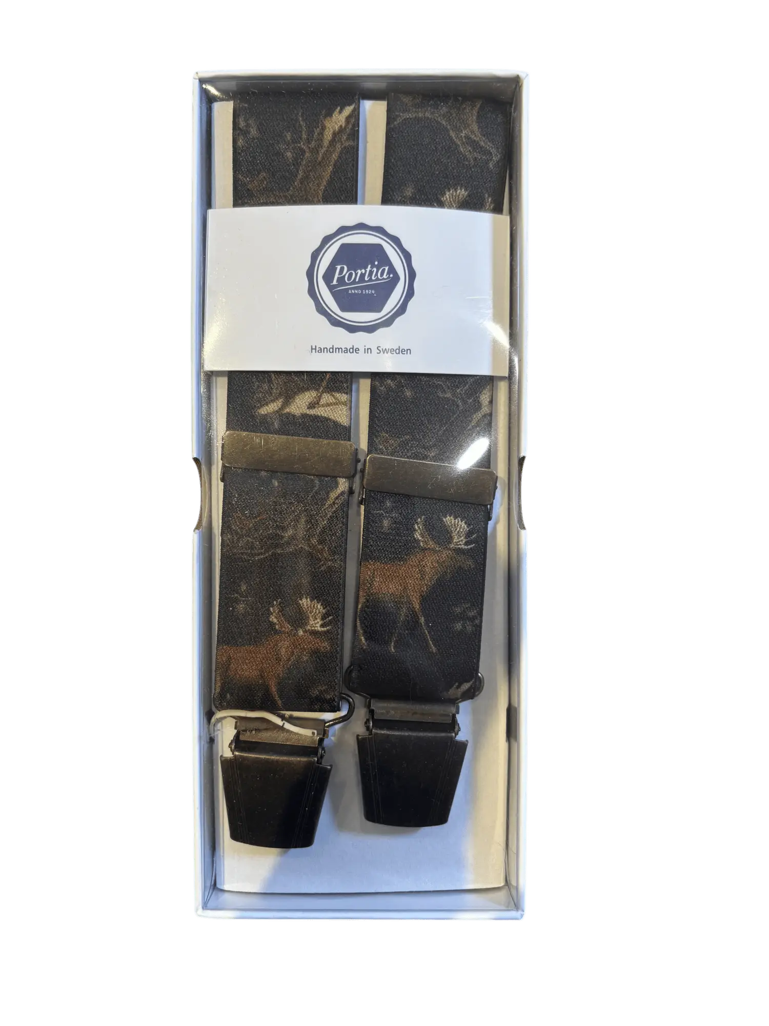 Portia hängslen med älgmotiv