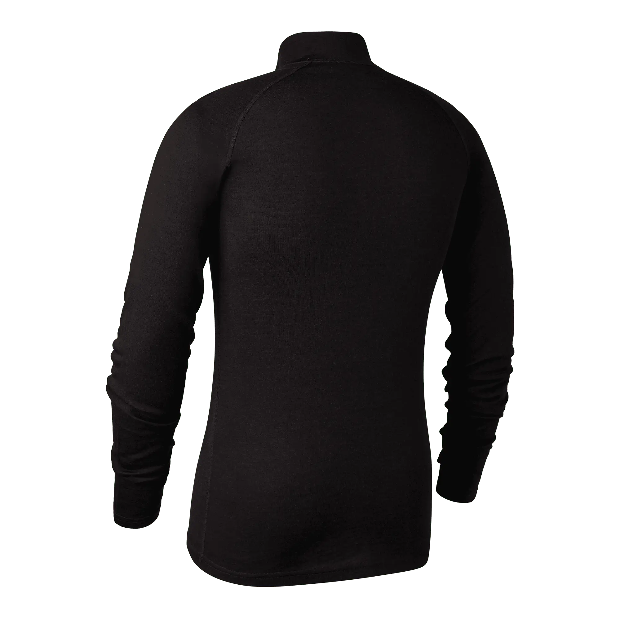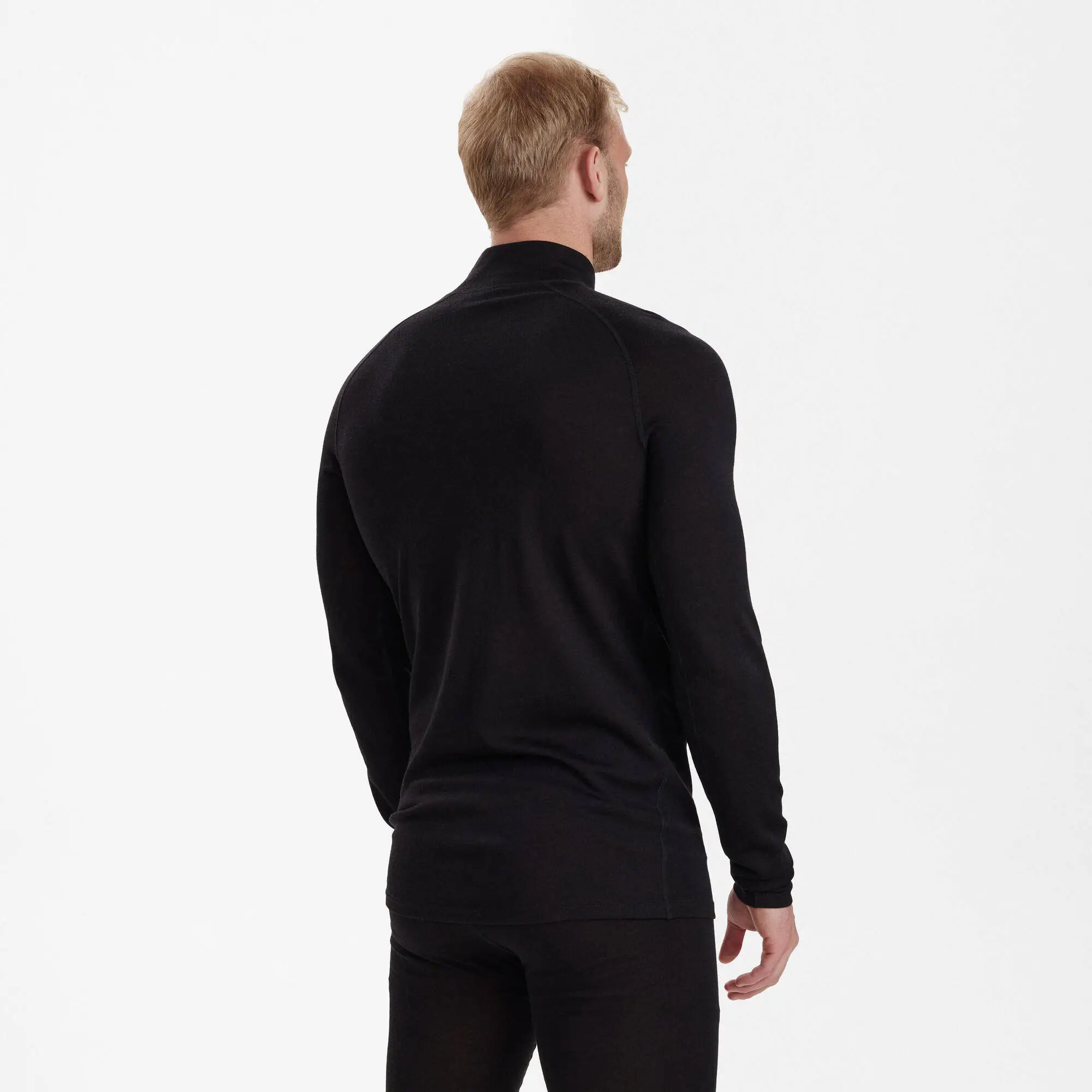 Den här klassiska undertröjan är den perfekta följeslagaren för alla utomhusentusiaster som vill hålla sig varm och bekväm oavsett väder. Tillverkad av finaste merinoull, noggrant utvald och 100 % mulesingfri, ger den en mjuk och lyxig känsla mot huden. Merinoullens naturliga egenskaper gör att tröjan reglerar temperaturen — den håller dig varm när det är kallt och hjälper till att hålla en behaglig temperatur när det är varmare. Det gör den idealisk att använda under svala tidiga morgnar eller iskalla jaktturer.