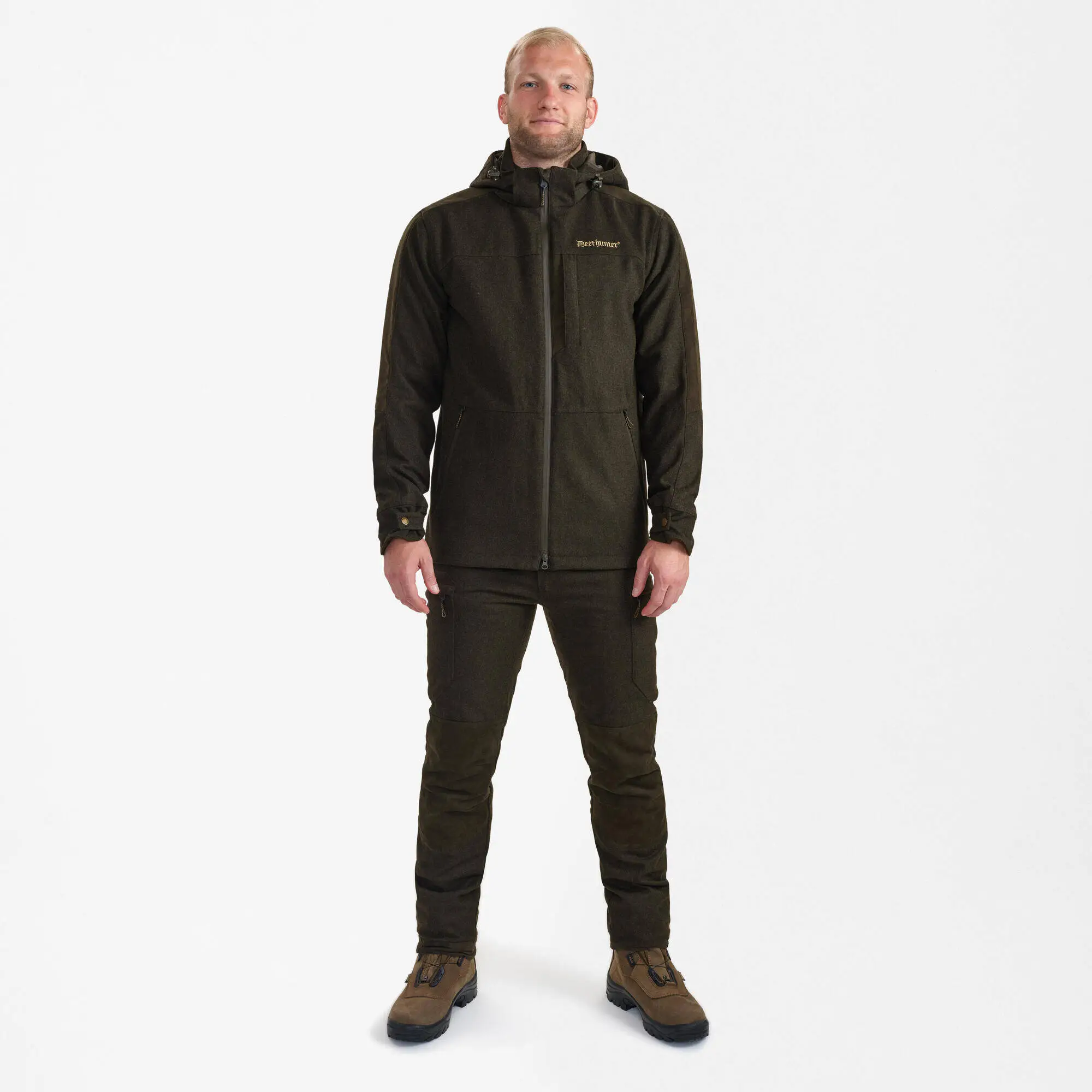 Den mjuka känslan och det ljudlösa utförandet gör den idealisk både för vardagsbruk och specifika utomhusaktiviteter som jakt. Imitation mocka på vissa detaljer ger en touch av elegans och funktionalitet. Det här materialet bidrar inte bara funktionellt till jackan utan framhäver också den minimalistiska stil som gör den så attraktiv för dig som värdesätter enkelhet och kvalitet.