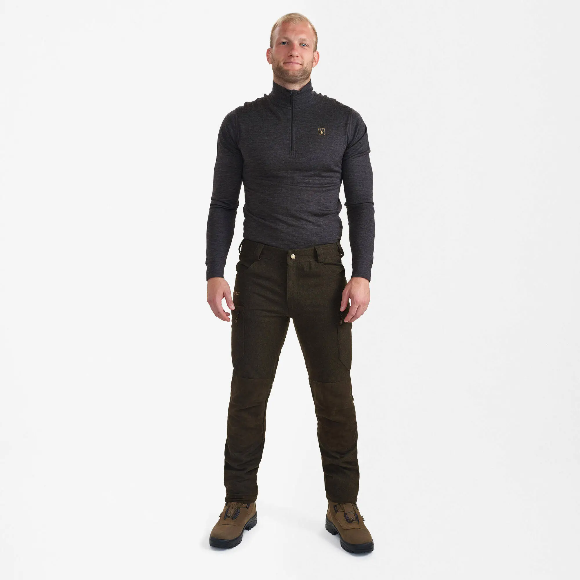 Varje detalj i designen är genomtänkt för att skapa ett par jaktbyxor som är lika stilfulla som de är praktiska. Kombinationen av ullens naturliga egenskaper och Deerhunters avancerade design innebär att du är rustad för att hantera naturens element, oavsett vart dina äventyr tar dig. Lita på tystnadens ljud och låt dina jaktskott tala.