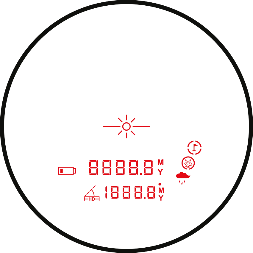 Den inbyggda avståndsmätaren ger imponerande räckvidd och en oöverträffad precision på endast +/- 1 m. Och med den röda OLED-skärmen är du garanterad att visningen är klar och tydlig.