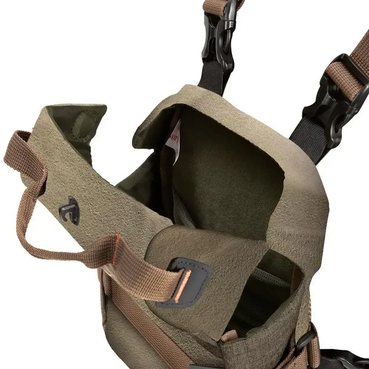 Denna kikarfodral har också en ficka för en avståndsmätare tillsammans med nätfickor och en bakficka med dragkedja för andra tillbehör.