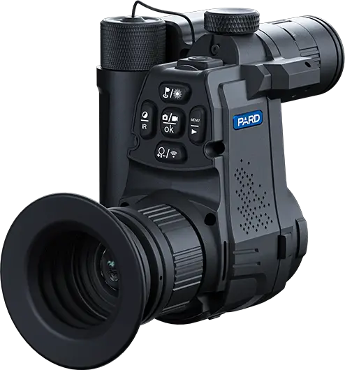 PARD NV007SP2 4K ger skarpa 4K-bilder för nattjakt. Använd den som clip-on eller handhållen. Flexibel IR (850/940 nm), 60 Hz, IP67 och upp till 8 timmars drift.