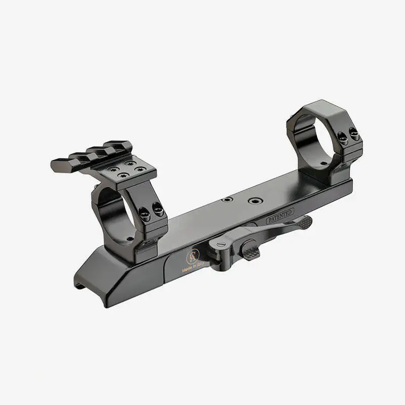 Den patenterade Quick Release-lösningen med låsspak på vänster sida ger dig möjlighet att ta kikaren av och på utan verktyg – och ändå behålla exakt nollpunkt, skott efter skott. Perfekt om du behöver transportera geväret, byta optik eller kombinera dag- och nattjakt.