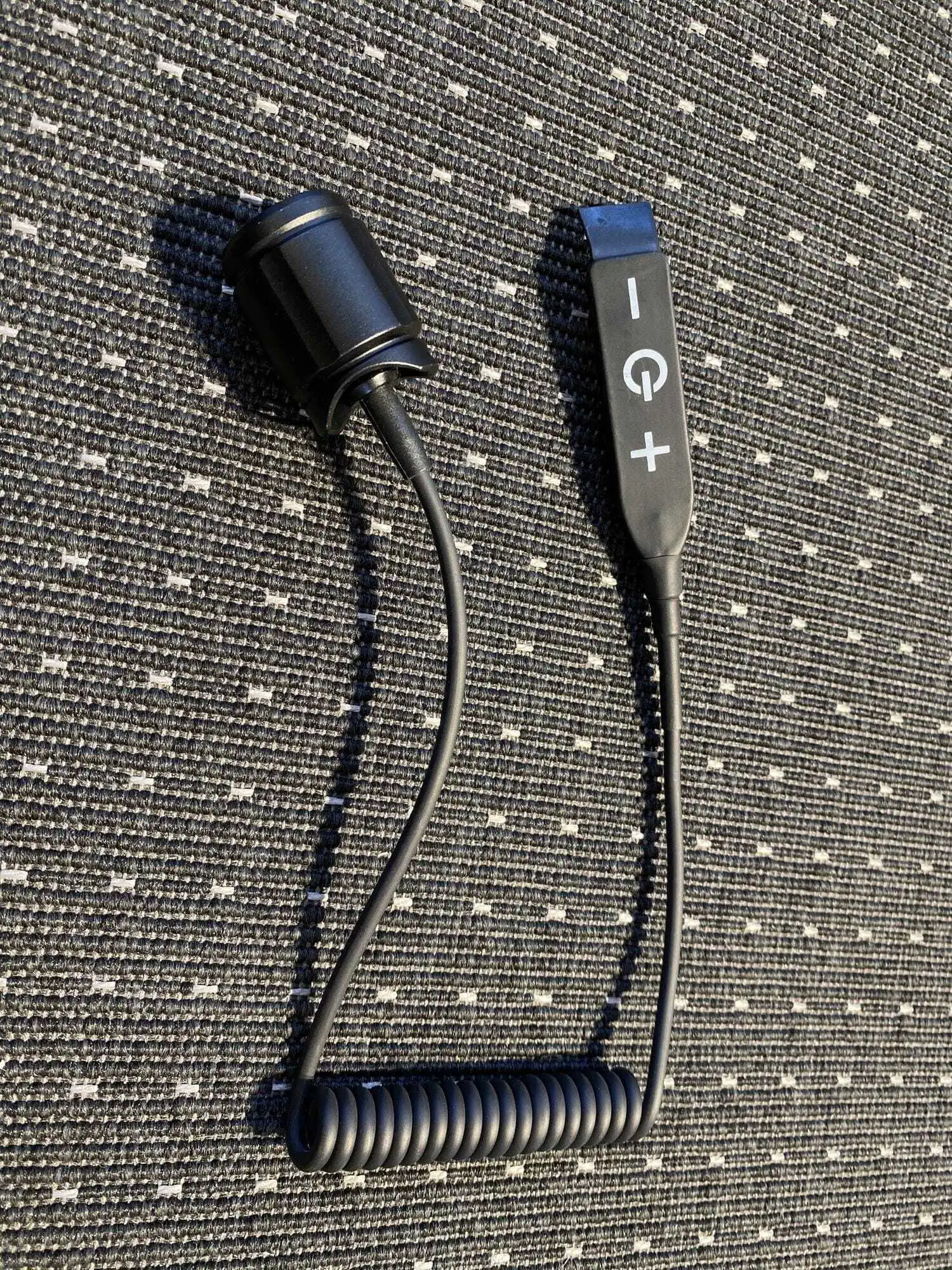 Spiralledningen gör att fjärrkontrollen är 50 cm när den är "ihoprullad"
