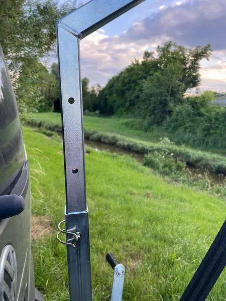 Galgens spjut/stöd går ner till marken så att lasten vilar mot marken och inte belastar släpvagnskopplingen. - Tack vare det enkla plug-in-systemet behöver du inga verktyg, och bommen är snabb att montera och ta bort.