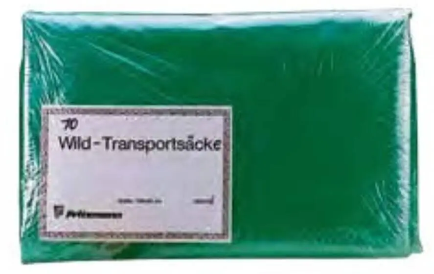 Rejäl grön plastviltpåse för transport av vilt.