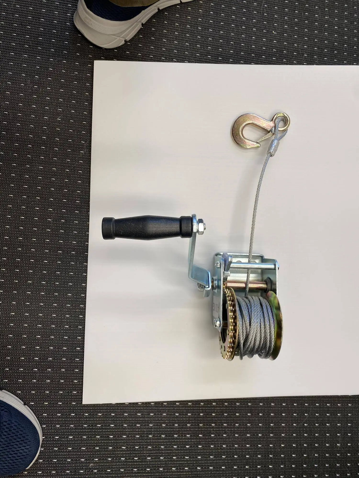 Levereras så att du kan ta av vajern helt från vinschen och föra den genom t.ex. taljehjul