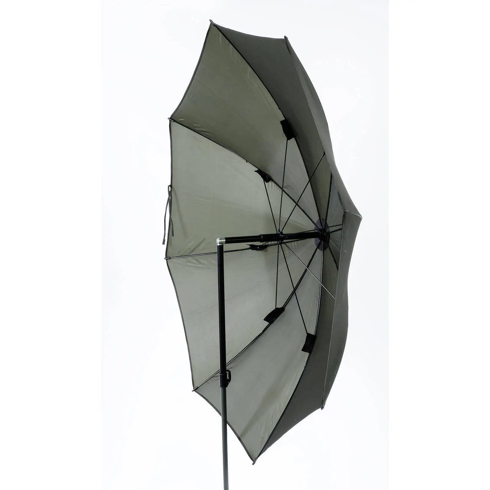 Robust och lättviktsparaply tillverkat av glasfiber och nylon, perfekt för jakt och fiske. Det medföljande jordspettet säkerställer stabil uppsättning i naturen, och den medföljande transportväskan gör det enkelt att ta med sig på tur.