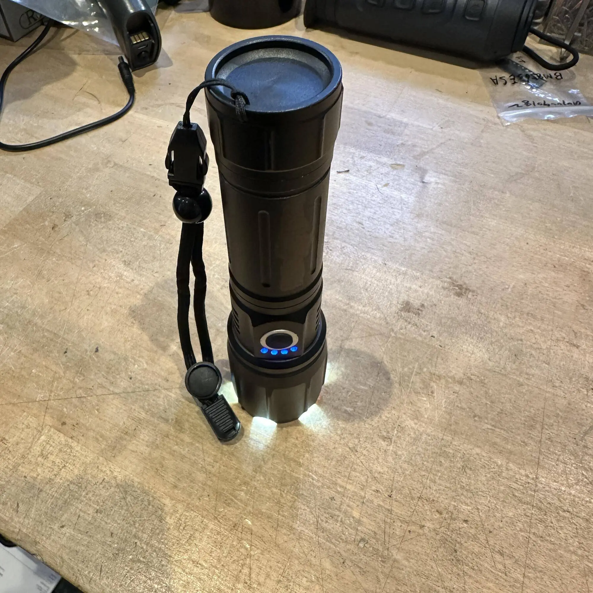 Den teleskopiska zoomfunktionen gör det möjligt att fokusera ljuset exakt efter behov, medan den vita laserpäran ger ett klart och skarpt sken. Det medföljande uppladdningsbara 26650-litiumbatteriet med Type-C-stöd säkerställer att du alltid är redo för action.