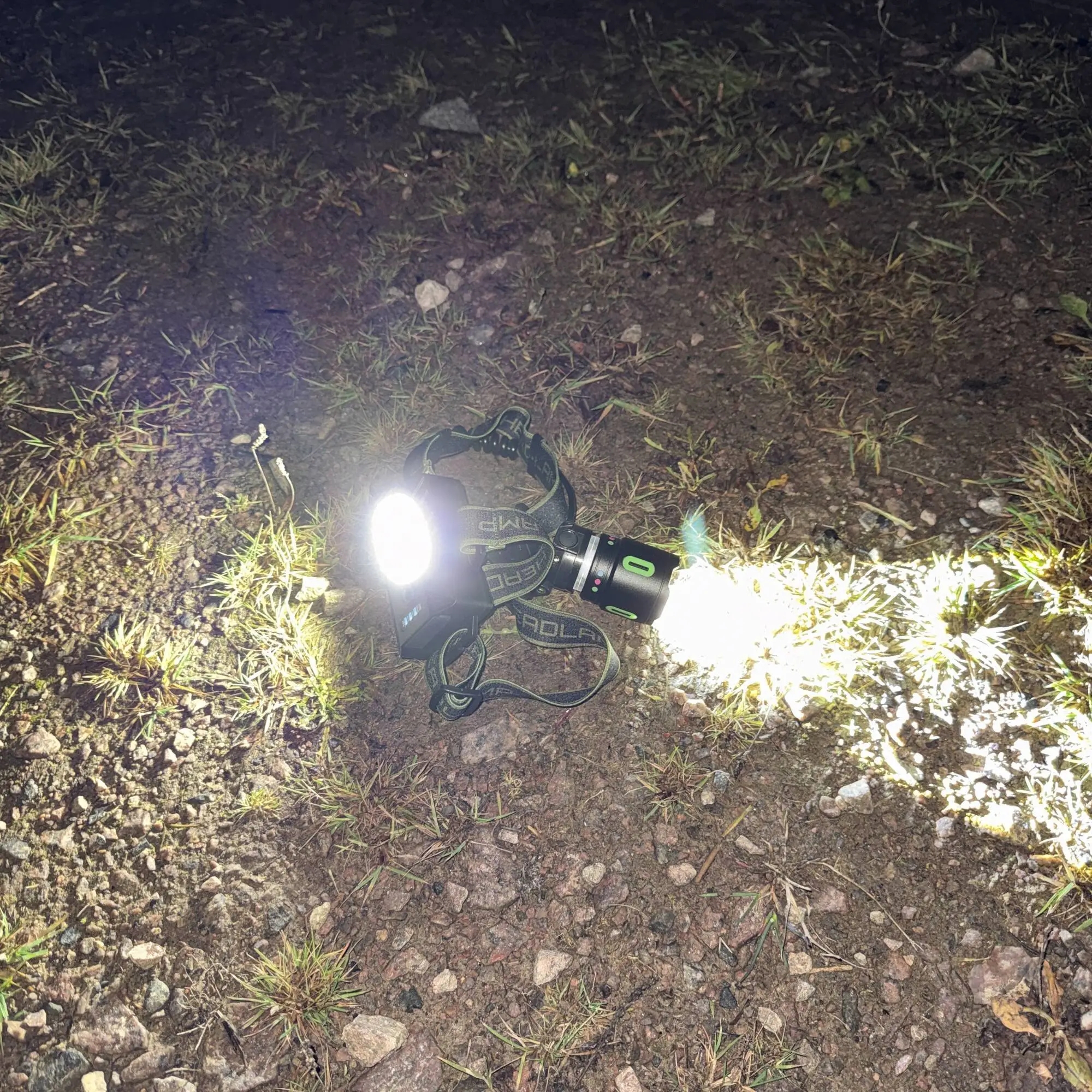 Multifunktionell pannlampa med mjukt, brett ljus.
