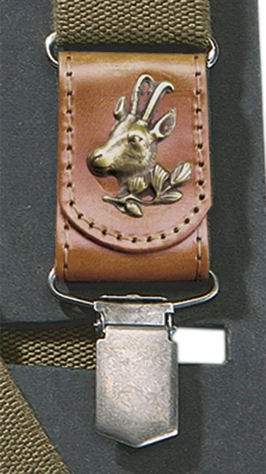 Hängslen med Råvildt-motiv på läderbakgrund, clipslås, universal