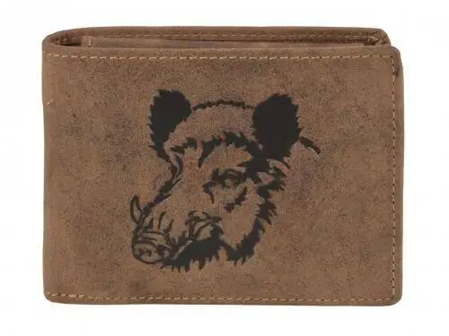 Vacker plånbok med vildsvinslädermotiv. Handsydd och mycket hållbar.
