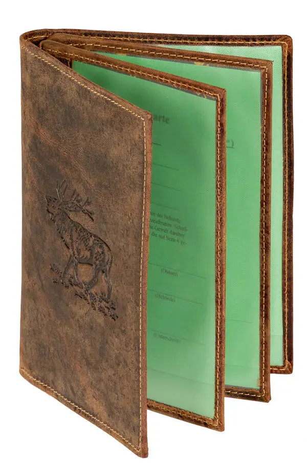 Mapp / Plånbok för vapenlicens med motiv av Kronhjort. Innehåller 6 fack och utförd i anikläder
