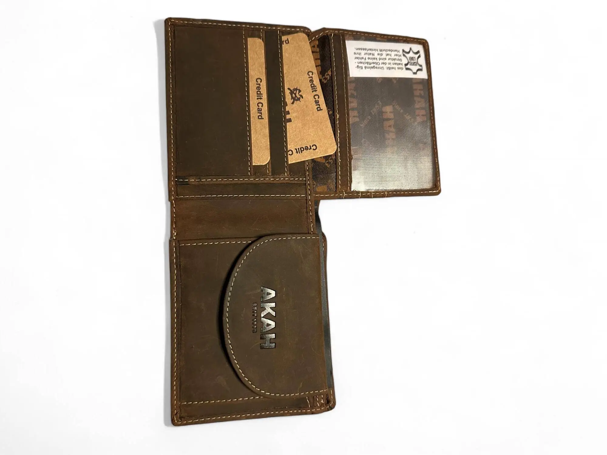 Plånbok i slitstarkt antikläder, handvaxad.
