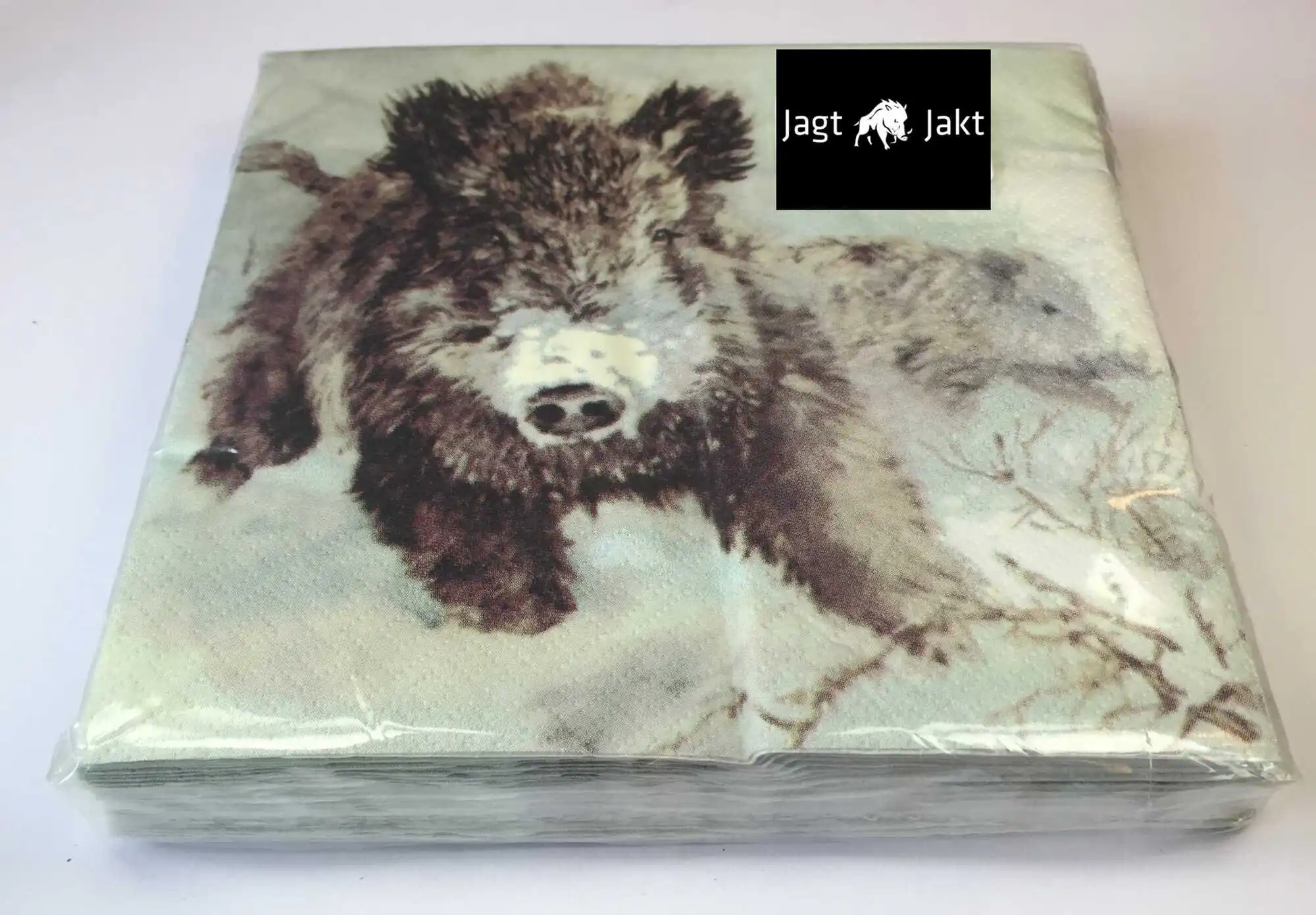 Servetter med vildsvinsmotiv. 20 st Vildsvin i skogen 33*33 cm 3-lagers papper
