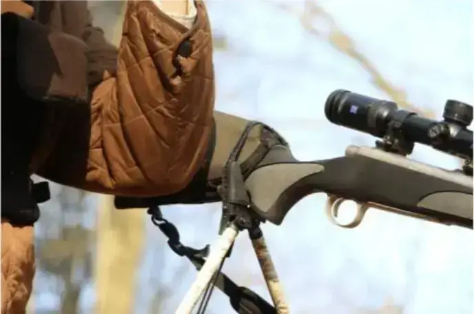 Det ergonomiskt formade silikonhandtaget ger ett stadigt och varmt grepp utan att klibba, samtidigt som det förhindrar ljud från slående ben. Det gör skjutstödet idealiskt för tysta rörelser i fältet.