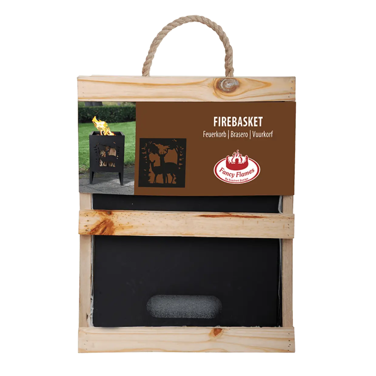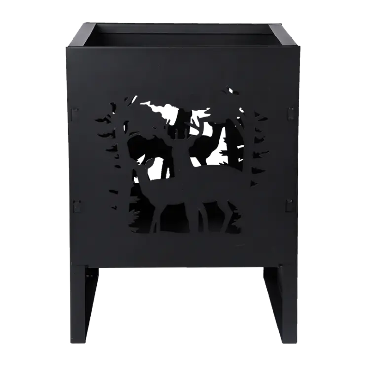 Denna fyrkantiga eldkorg med laserskurna hjortar skapar fantastiska skuggor och kompletterar vilken trädgård eller terrass som helst.