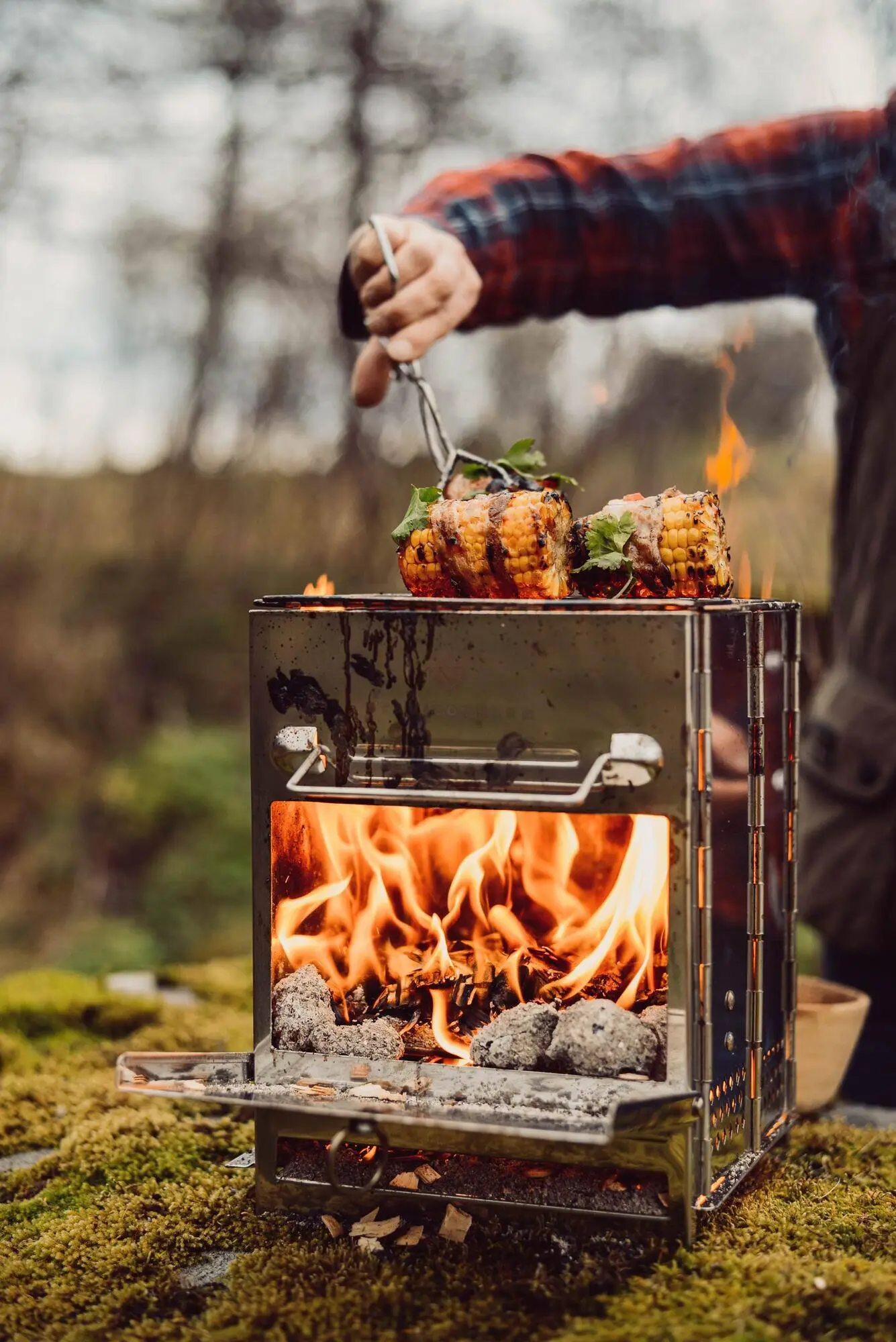 Du behöver inte ta med bränsle utan kan använda det som finns naturligt i naturen; kvistar, ris, bark osv. Fungerar också bra med flisor, träpellets eller briketter.