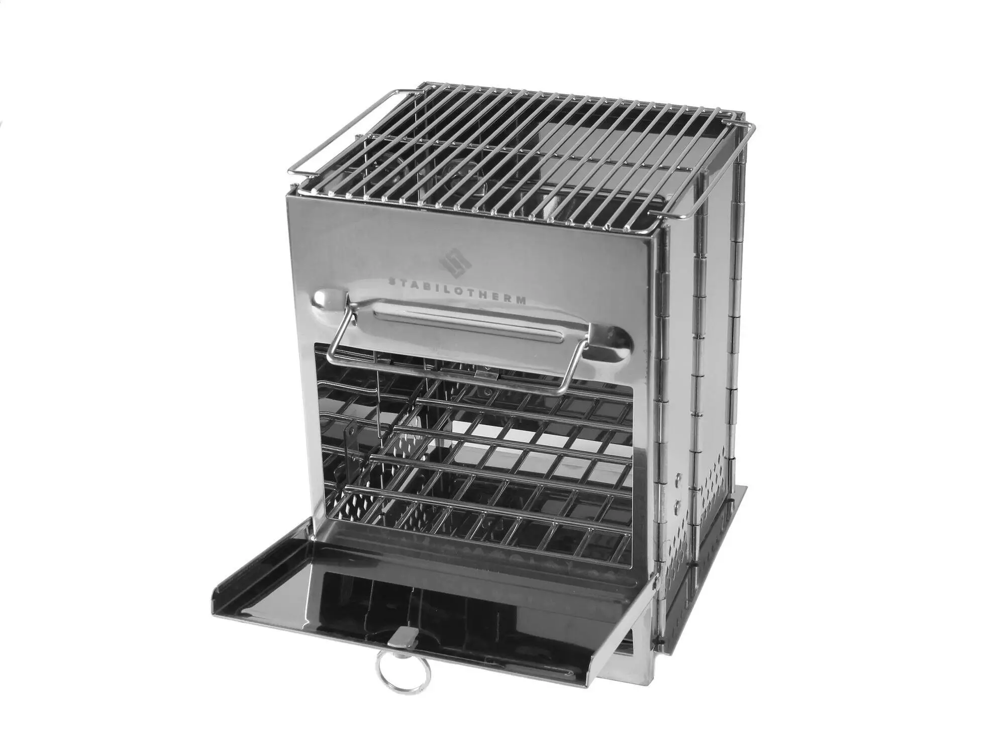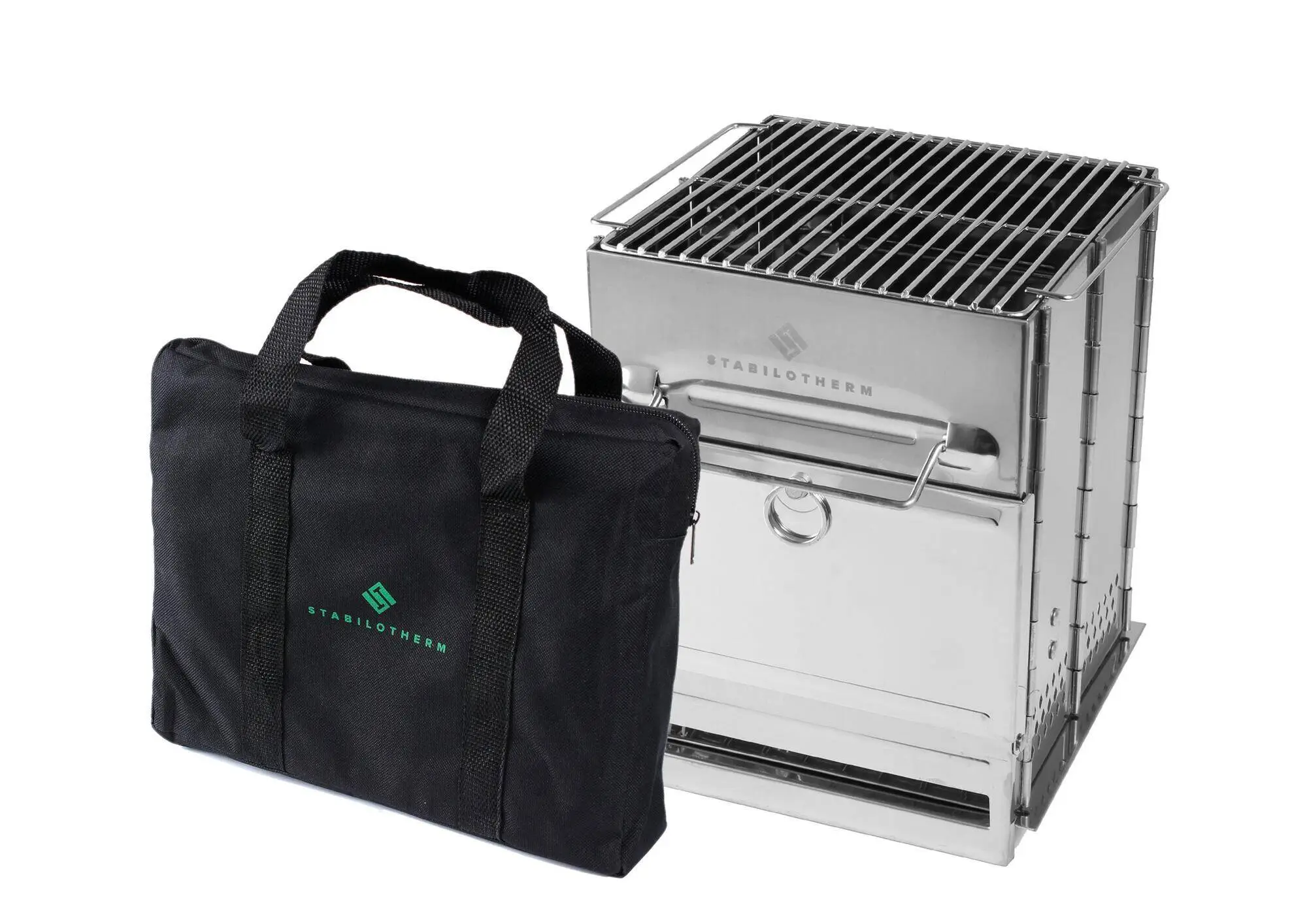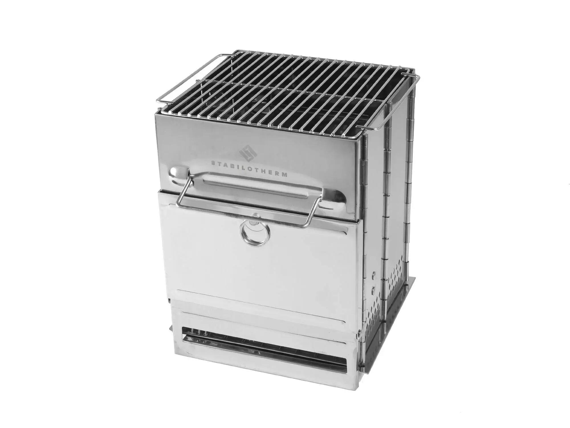 STABILOTHERM WOODSTOVE Tower är tillverkad i rostfritt stål. Grillgaller på 27 x 20 cm