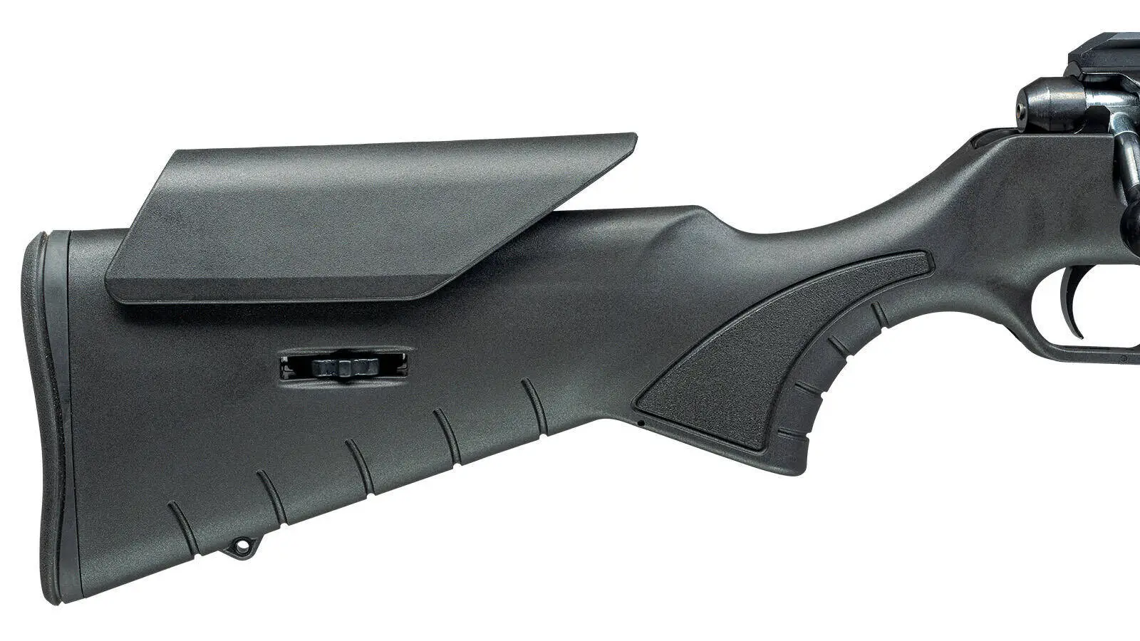 Med justerbar kindkudde, 15xmm gänga för ljuddämpare, extra magasin och medföljande gevärsfodral har Monza allt du behöver för en lyckad jakt.